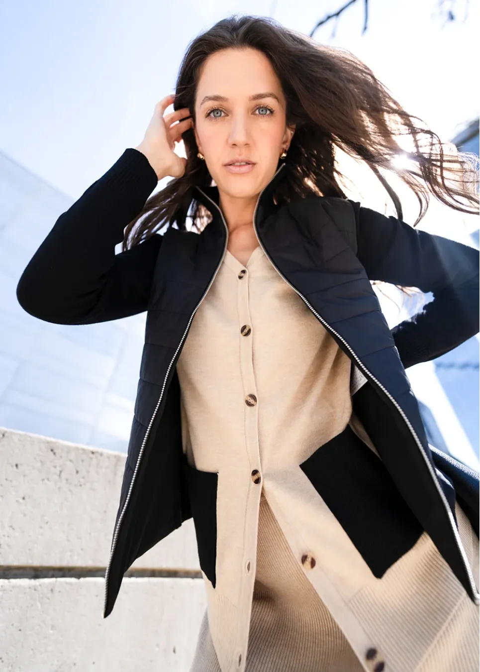 Quilted Knit Sleeve Jacket – Black