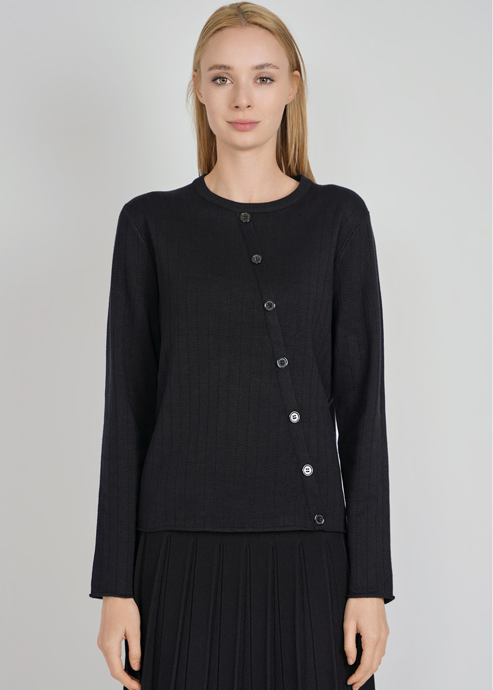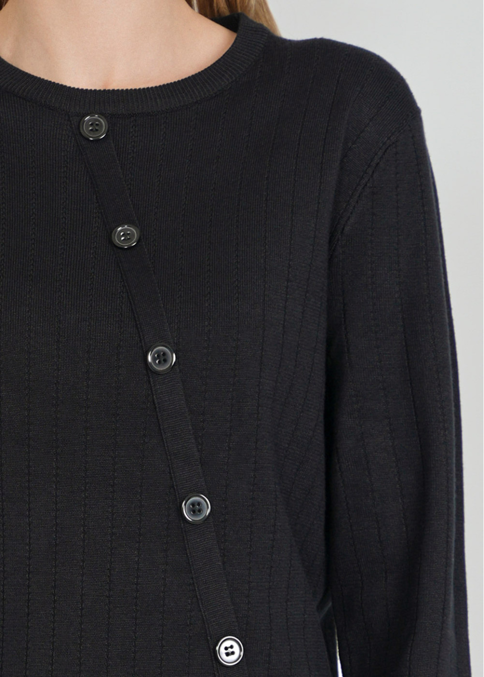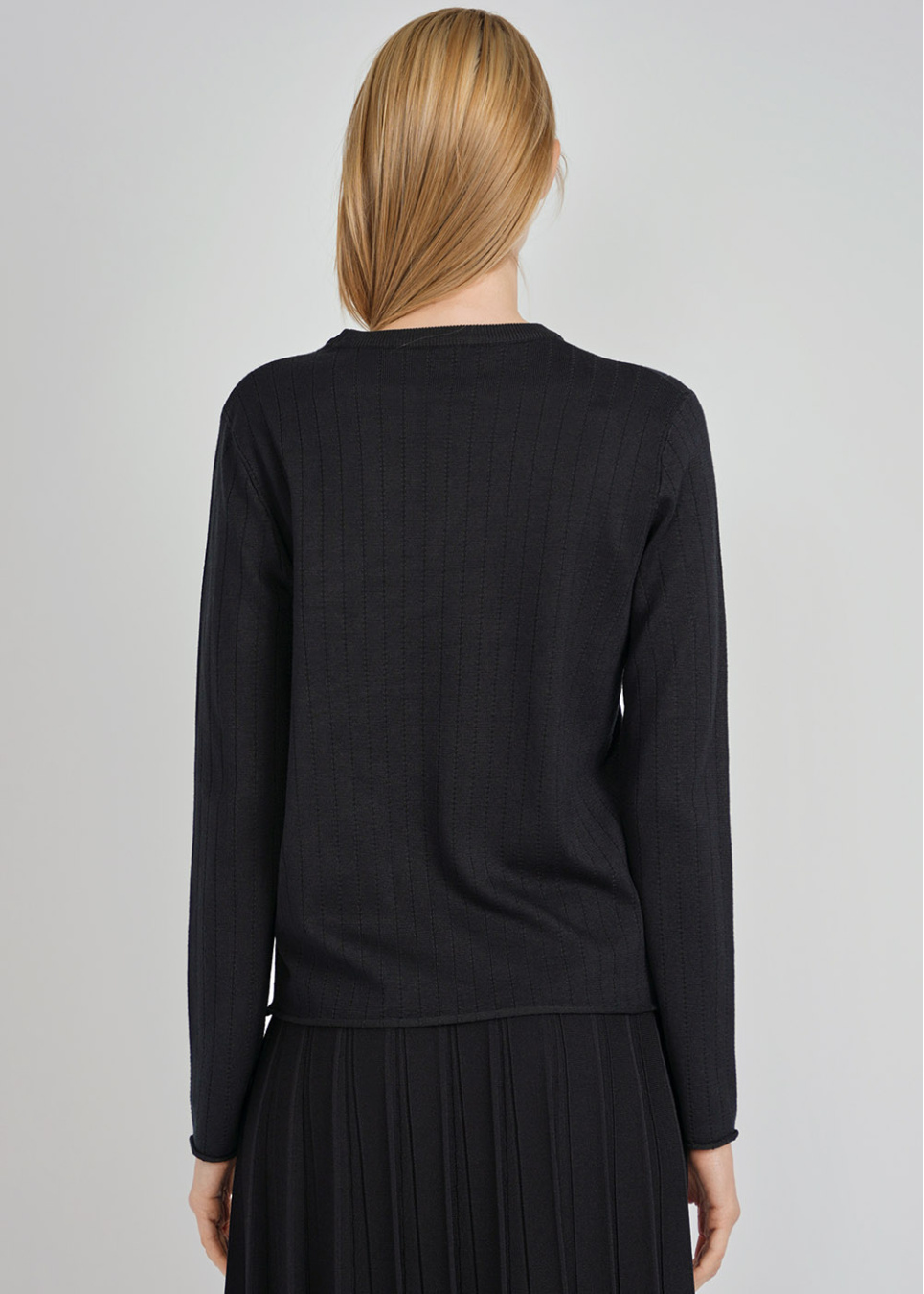 Black Ribbed Crew Neck Sweater With Stylish Buttons