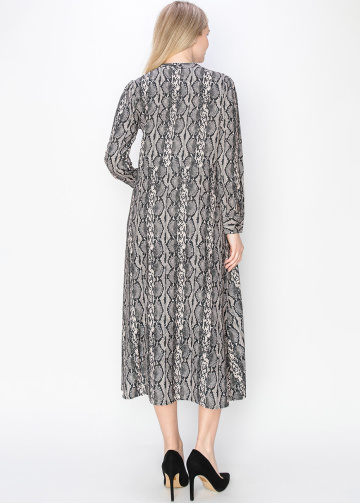 Add a touch of intrigue to your wardrobe with this black dress featuring a serpentine print. The long sleeves and simple design provide modest coverage, while the snake print brings a bold, fashionable element to the outfit.