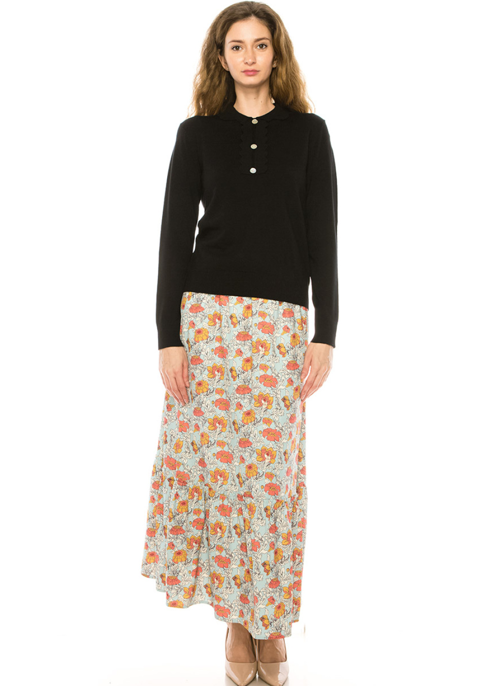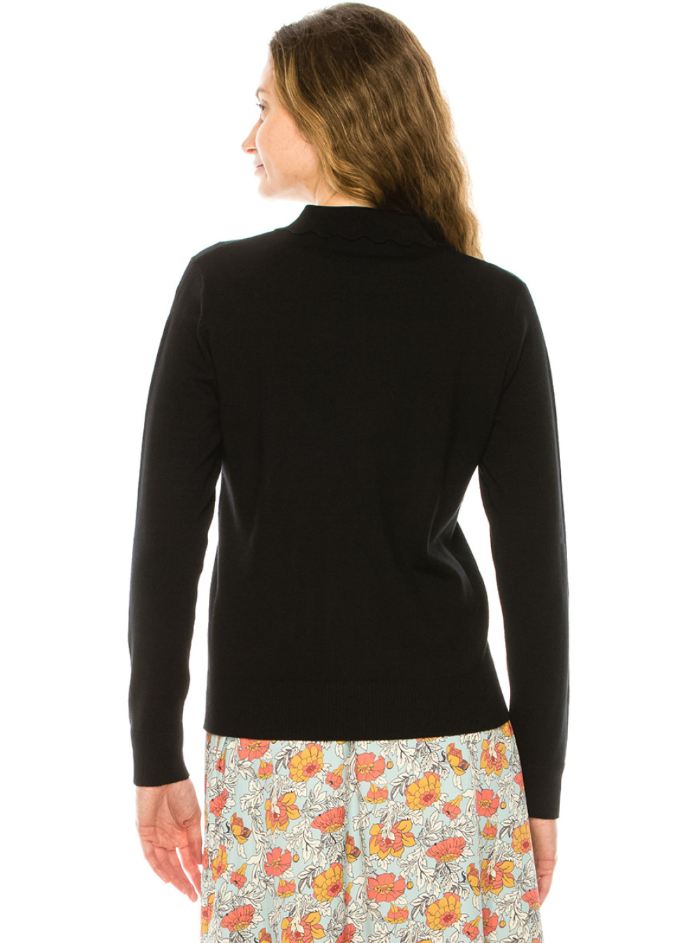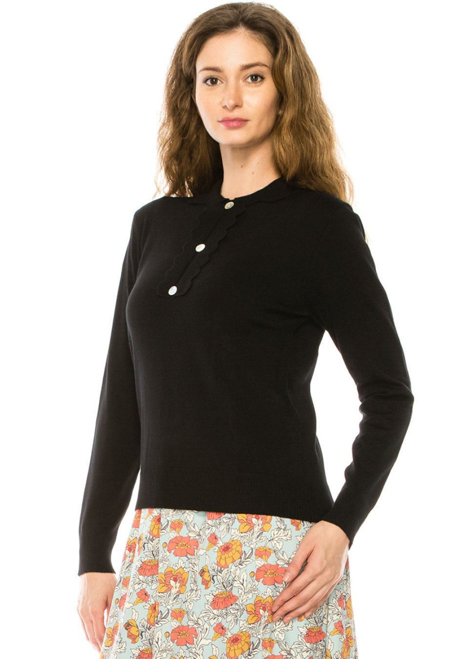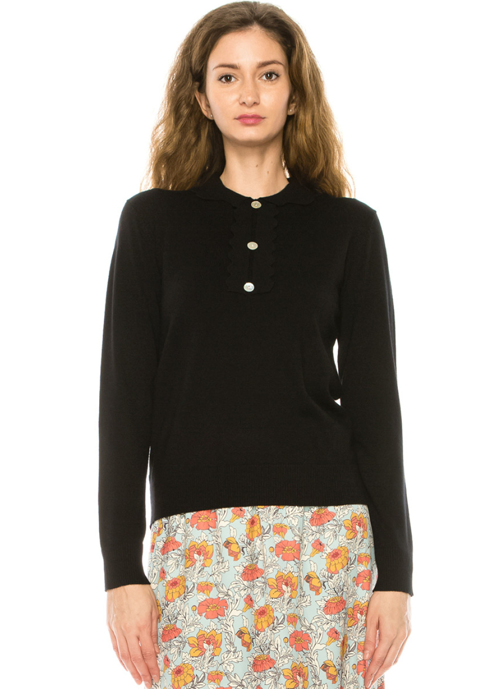 Add some edge to your wardrobe with this black sweater featuring a shirt collar and half-button front. The loose fit gives it a relaxed feel, while the shirt collar adds a touch of sophistication. Pair it with your favorite boots or sneakers and a statement necklace to create a bold and unique look.