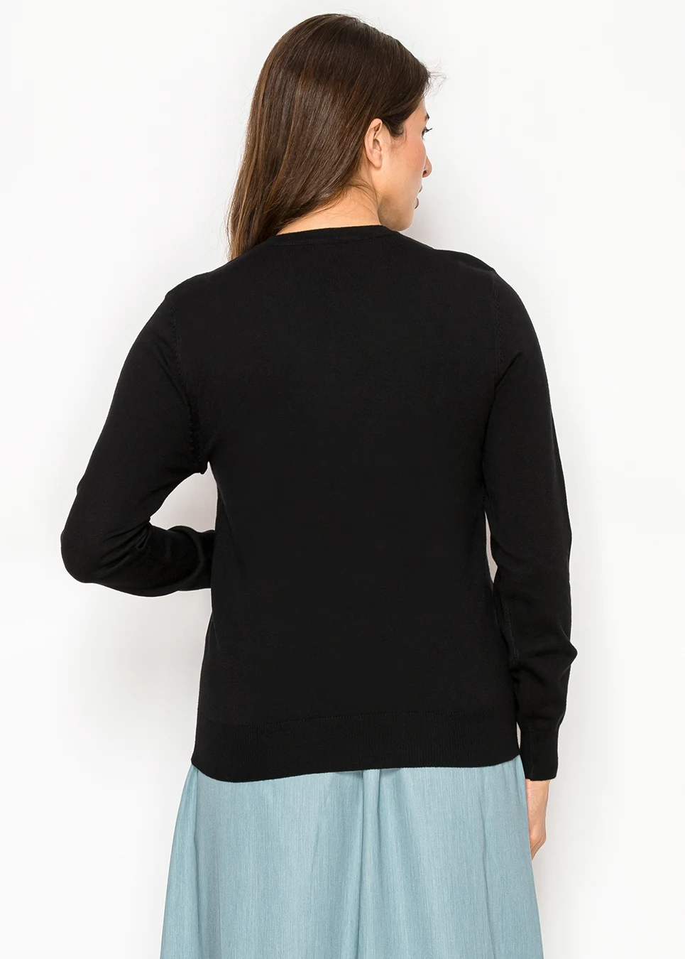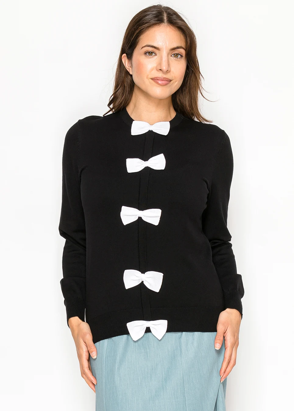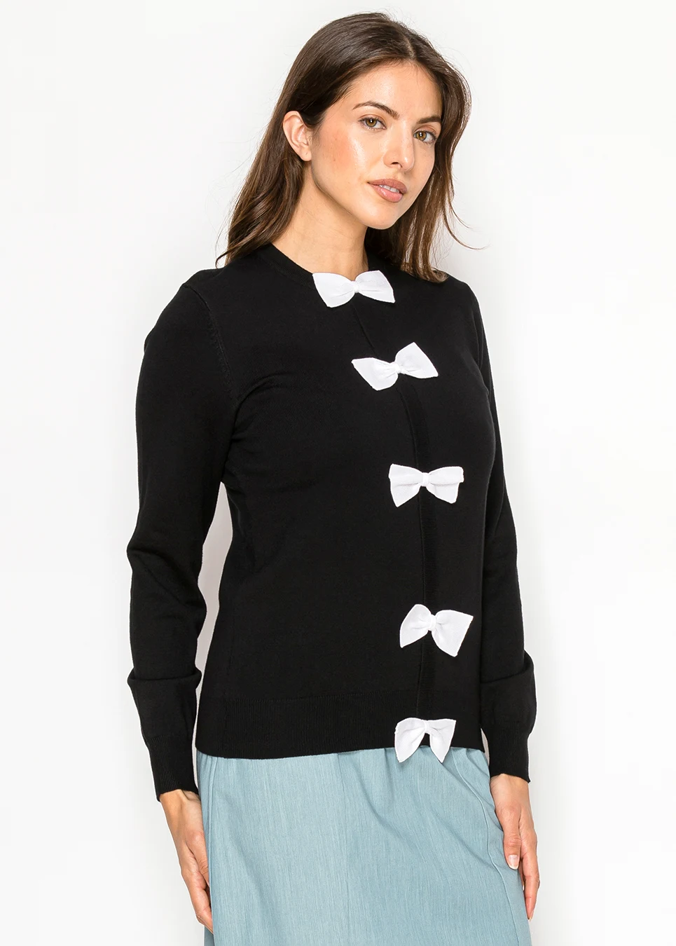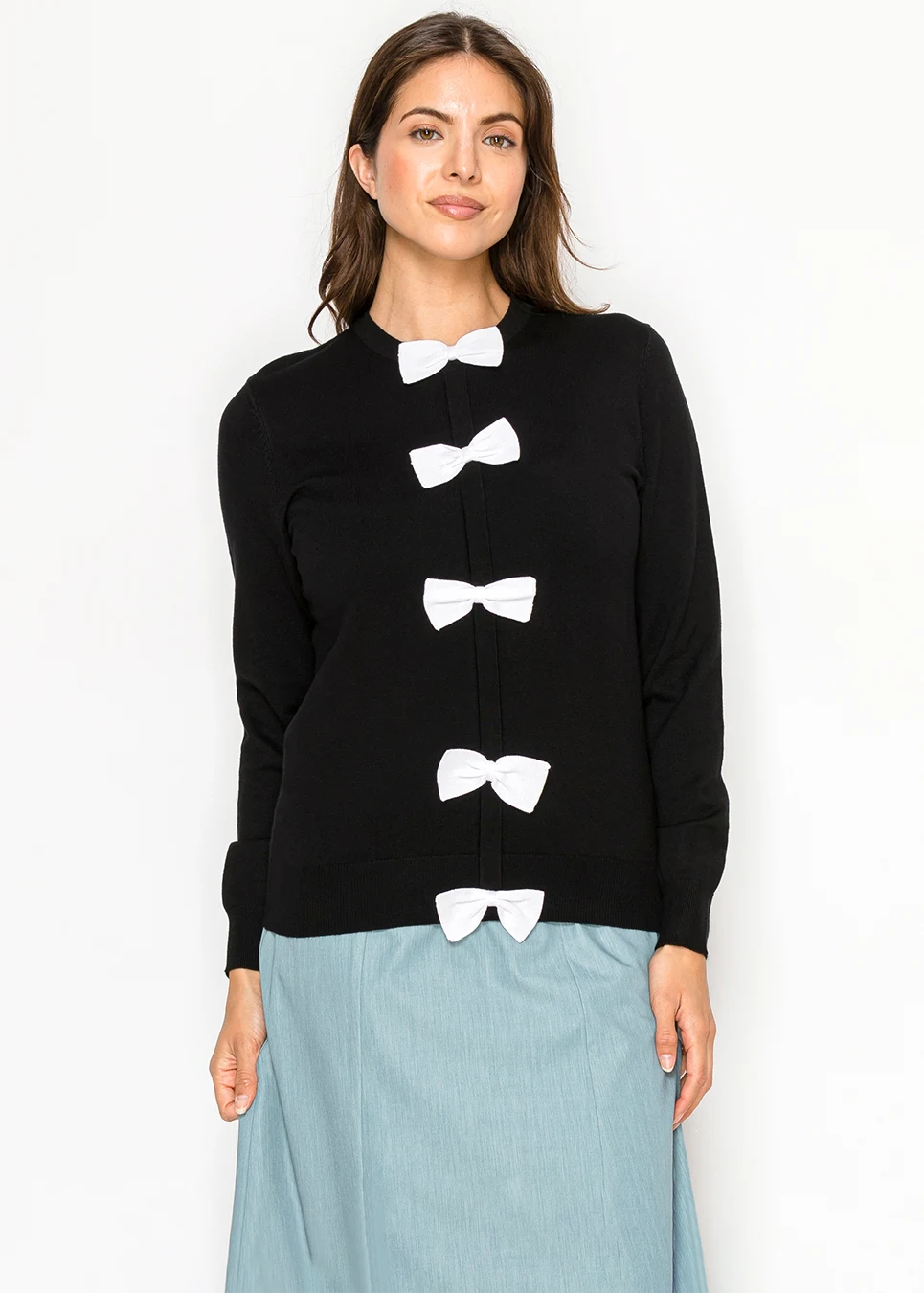 Black Sweater with White Bows Down Front