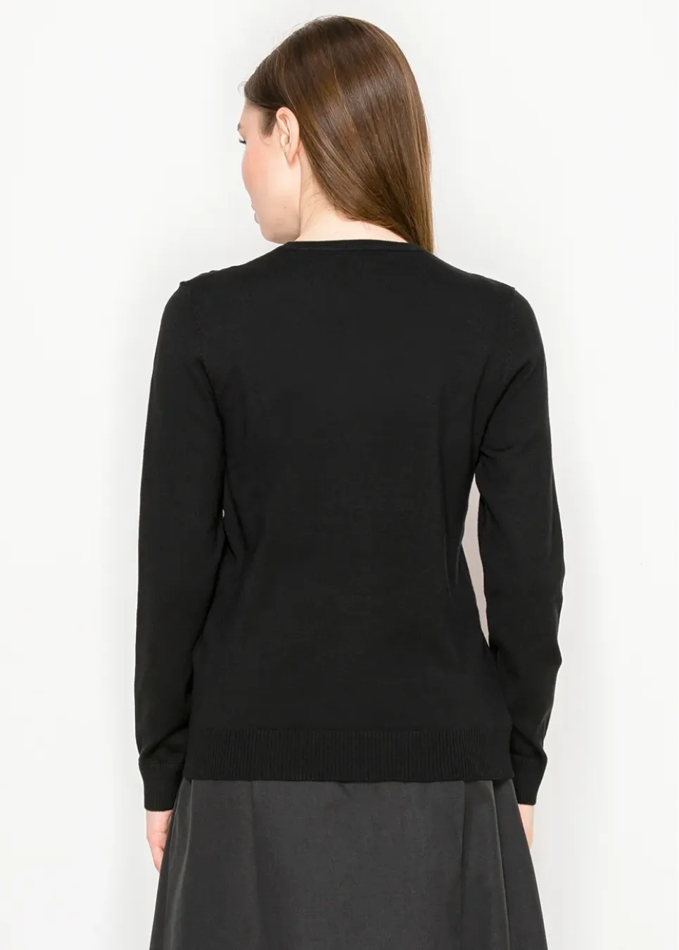 Black Knit Sweater with Leaf Detail