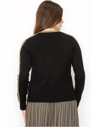 Black Sweater with Olive Stripe Detail