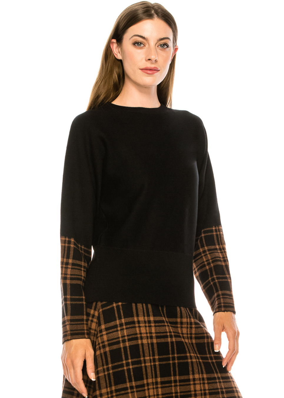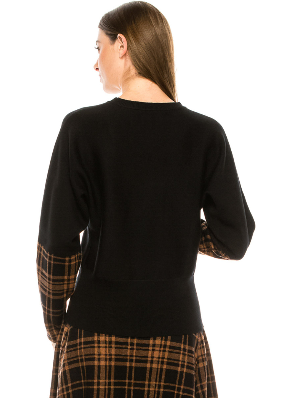 Black sweater with plaid printed accents