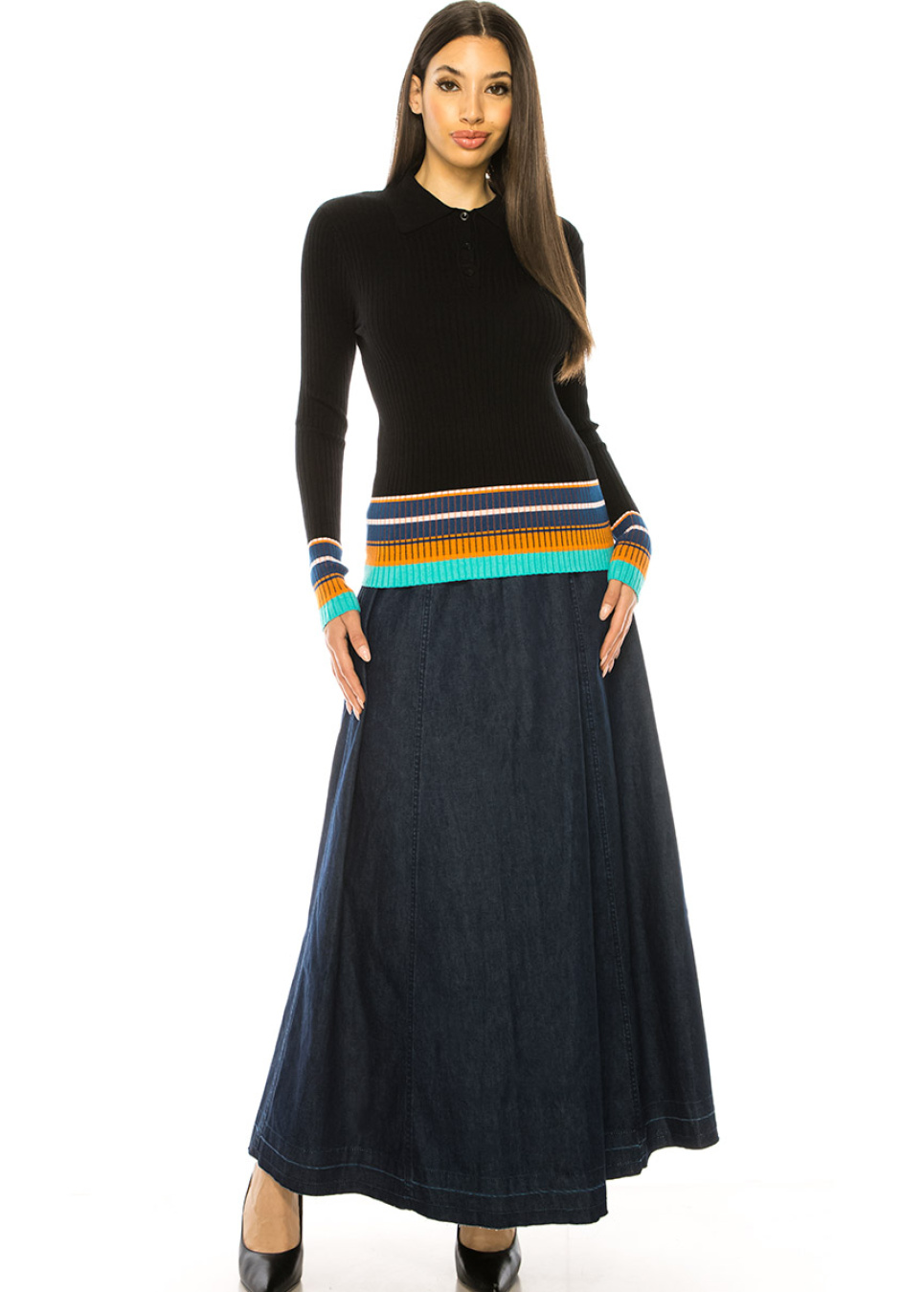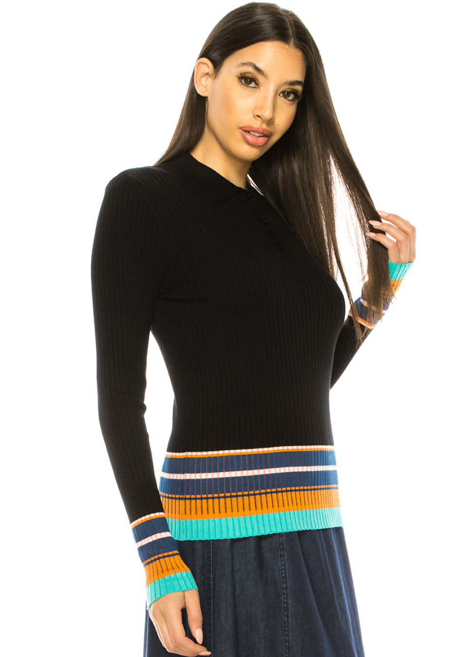 Black Sweater With Striped Edge