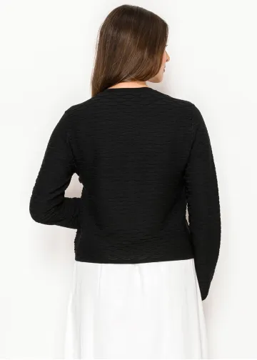 Black Crewneck Textured Cardigan