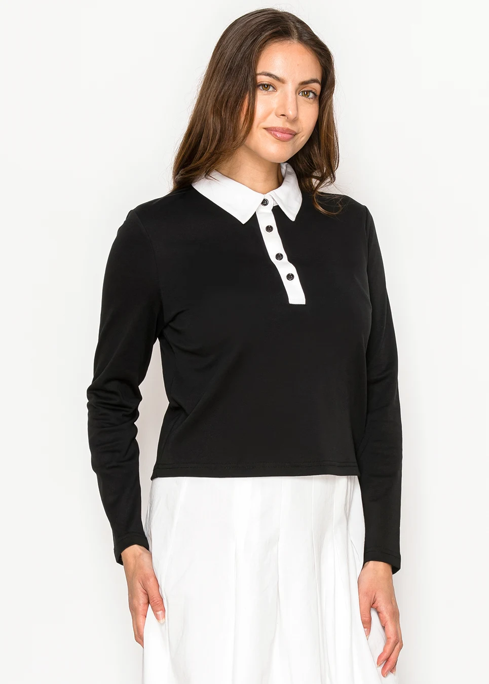 Black Tee with White Collar and Button Placket