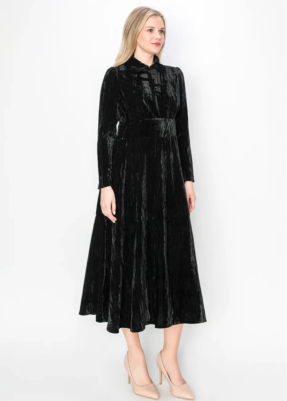 Black Velvet Collared Midi Dress