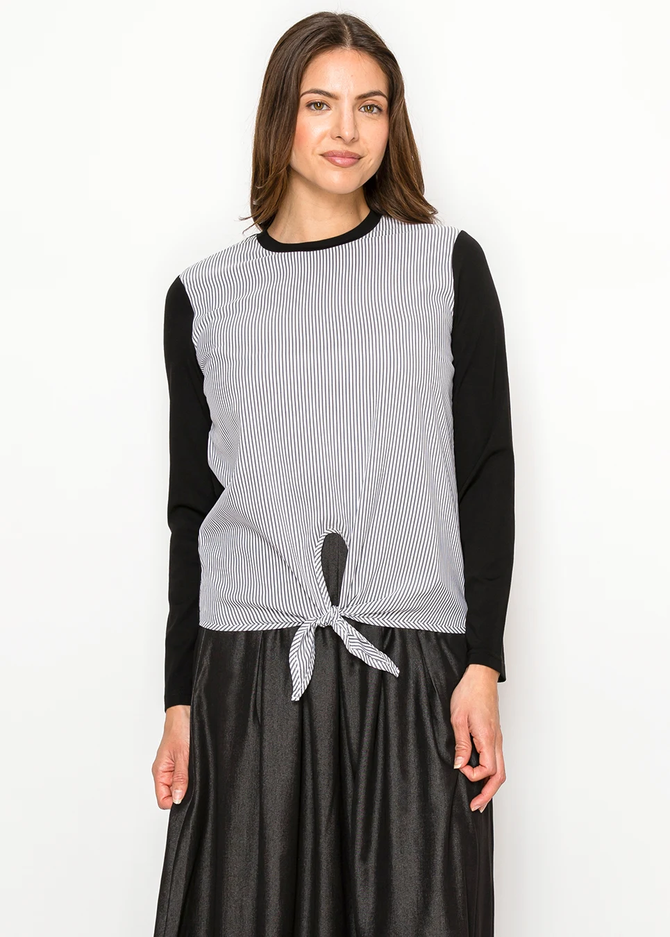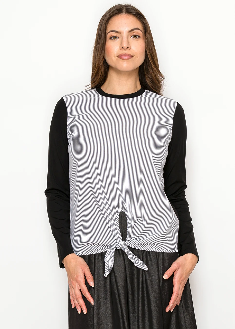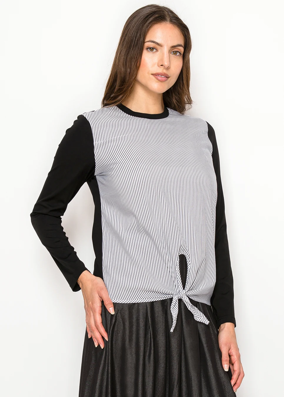 Black & White Pinstripe Front Tie T-Shirt