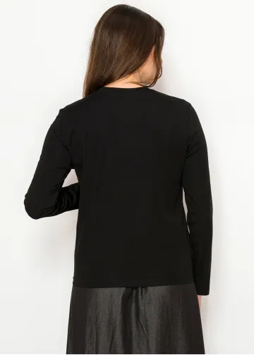 Soft Black Tee with Side Button Details