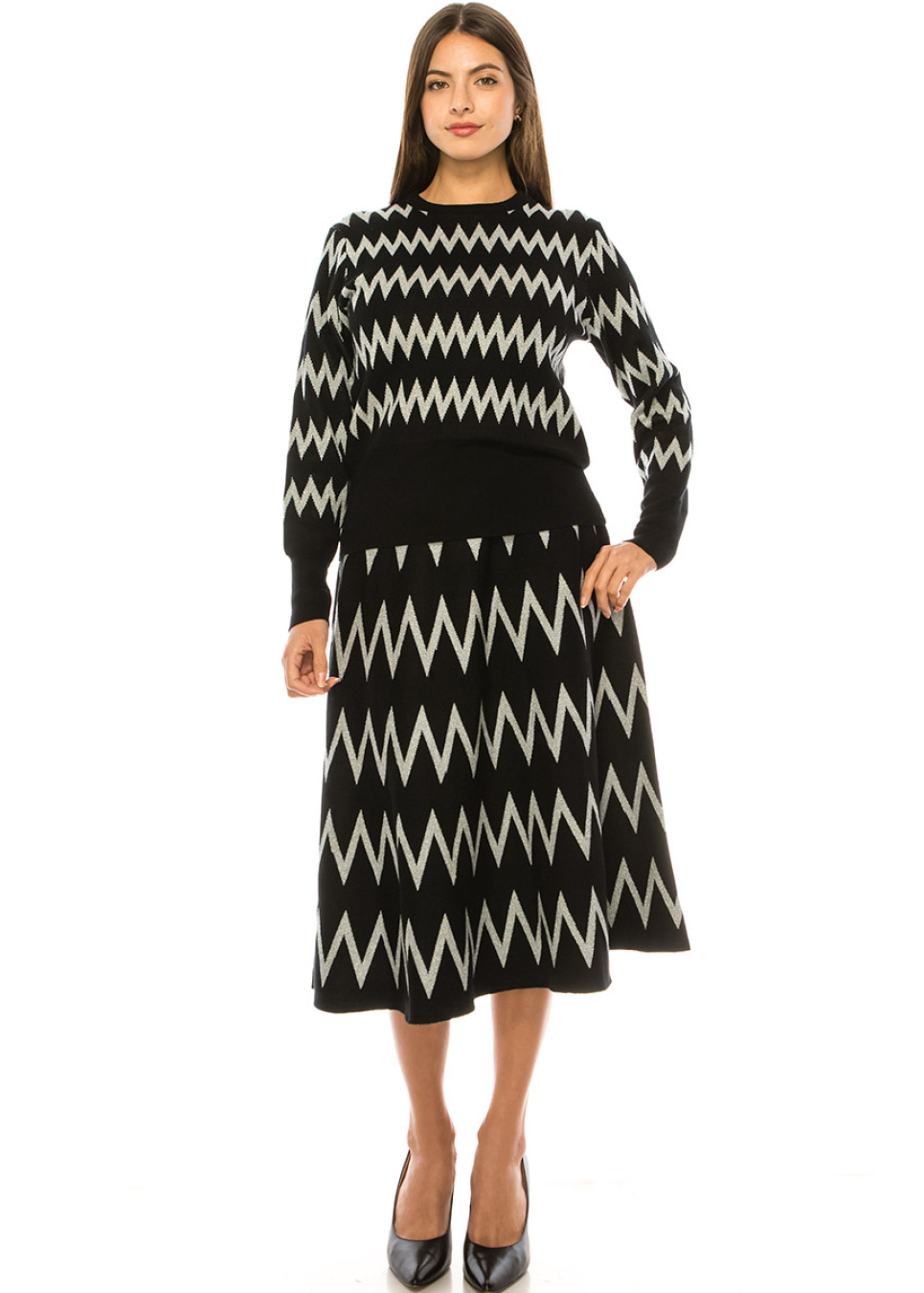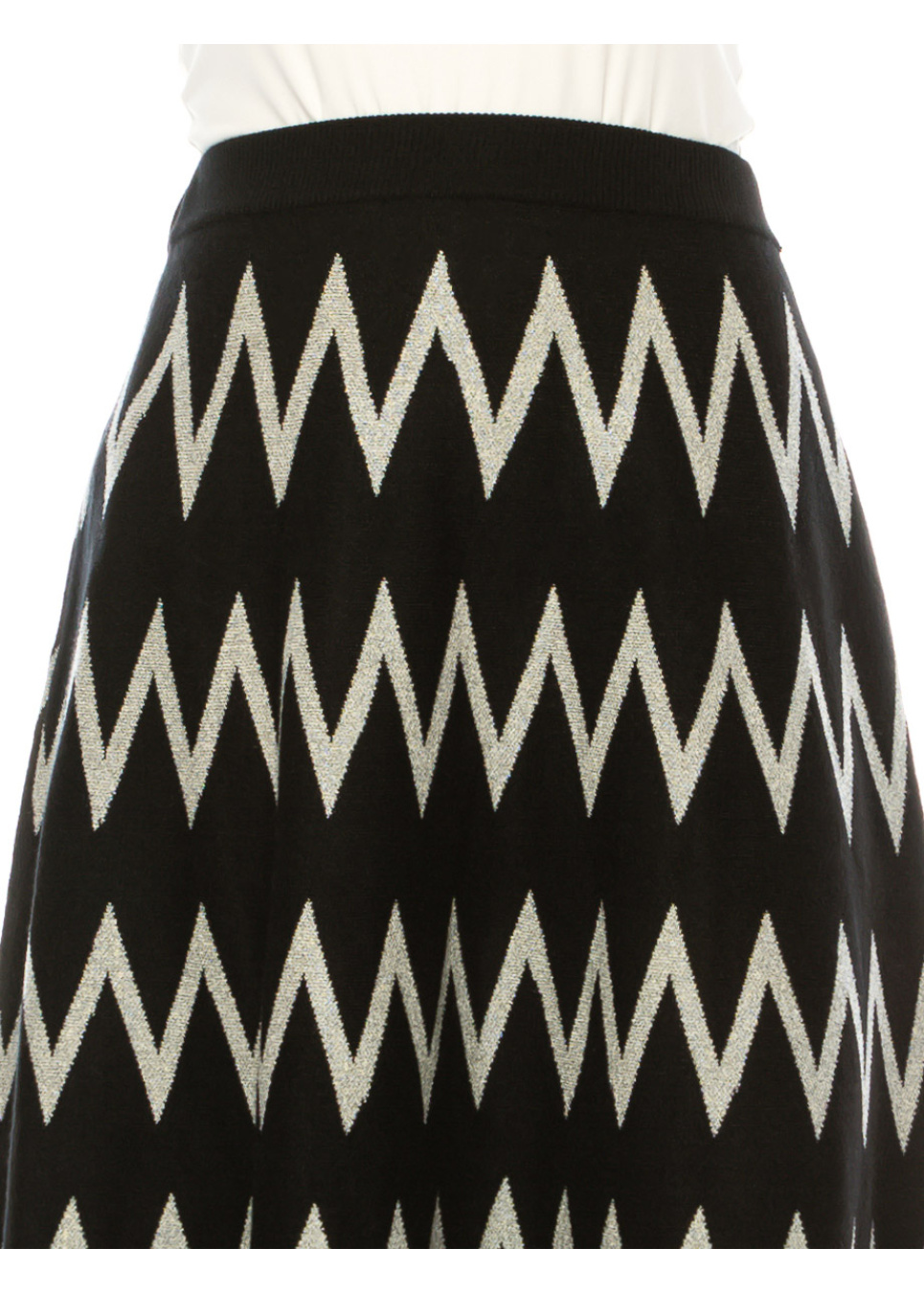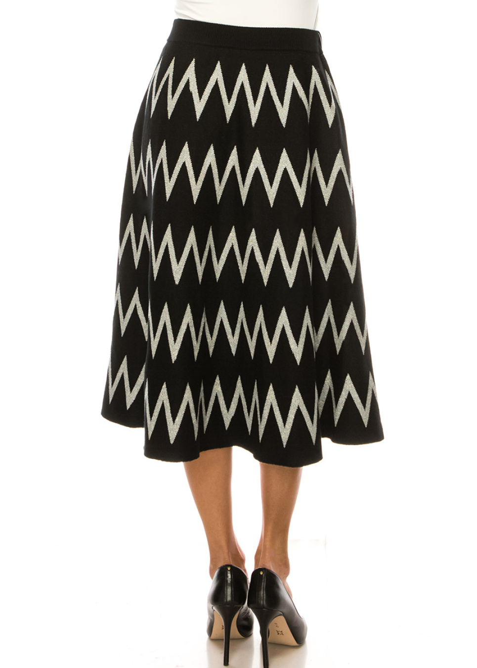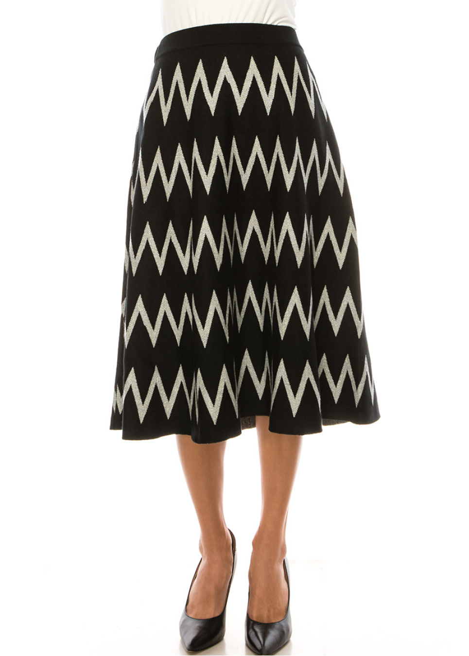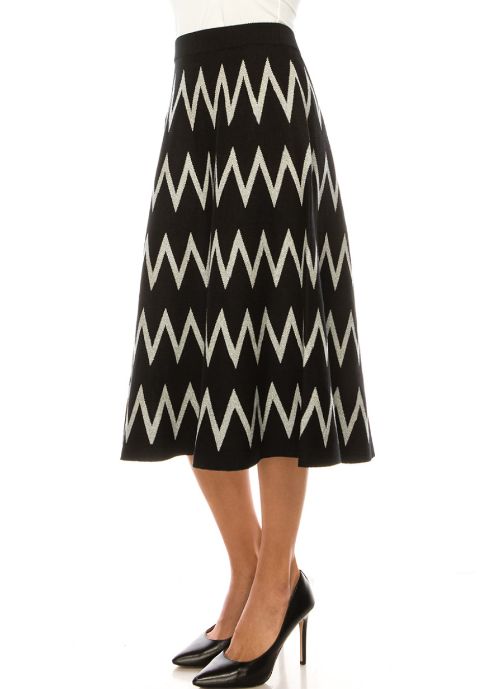 You are sure to love this striking zigzag printed skirt. The A-line silhouette and elastic waistband provide a comfortable and flattering fit, while the unique print adds a touch of intrigue and style to any outfit.