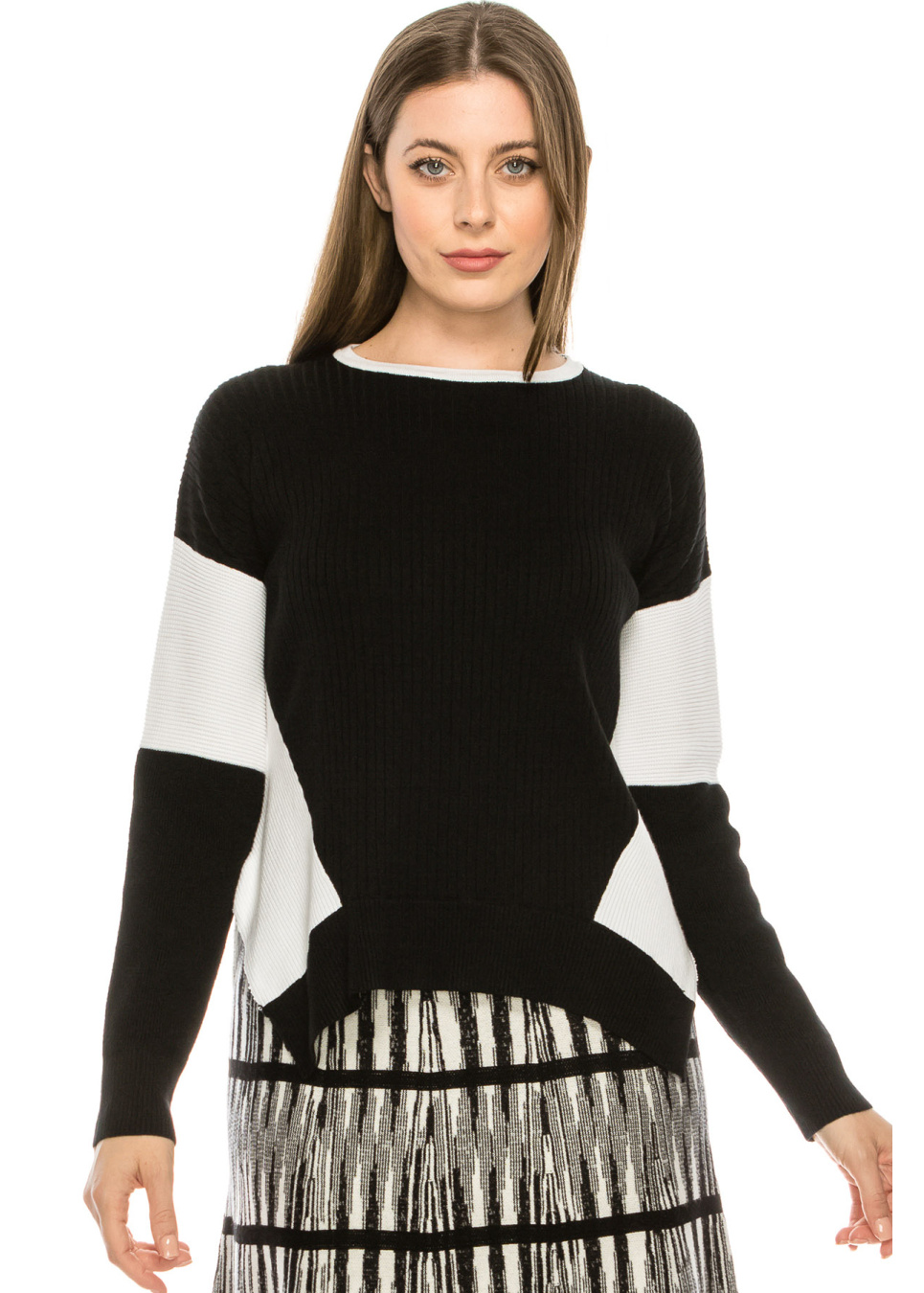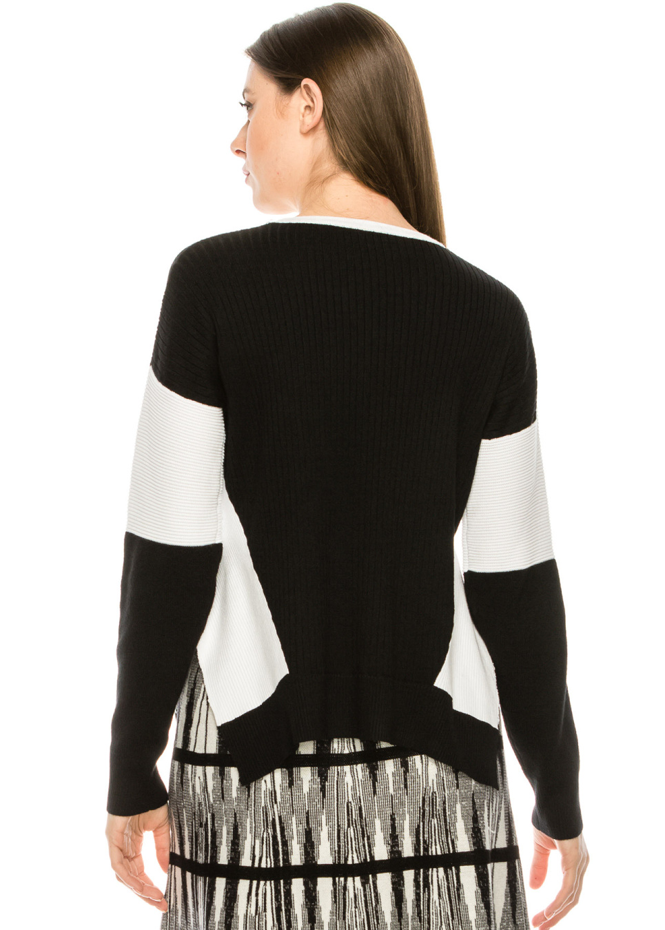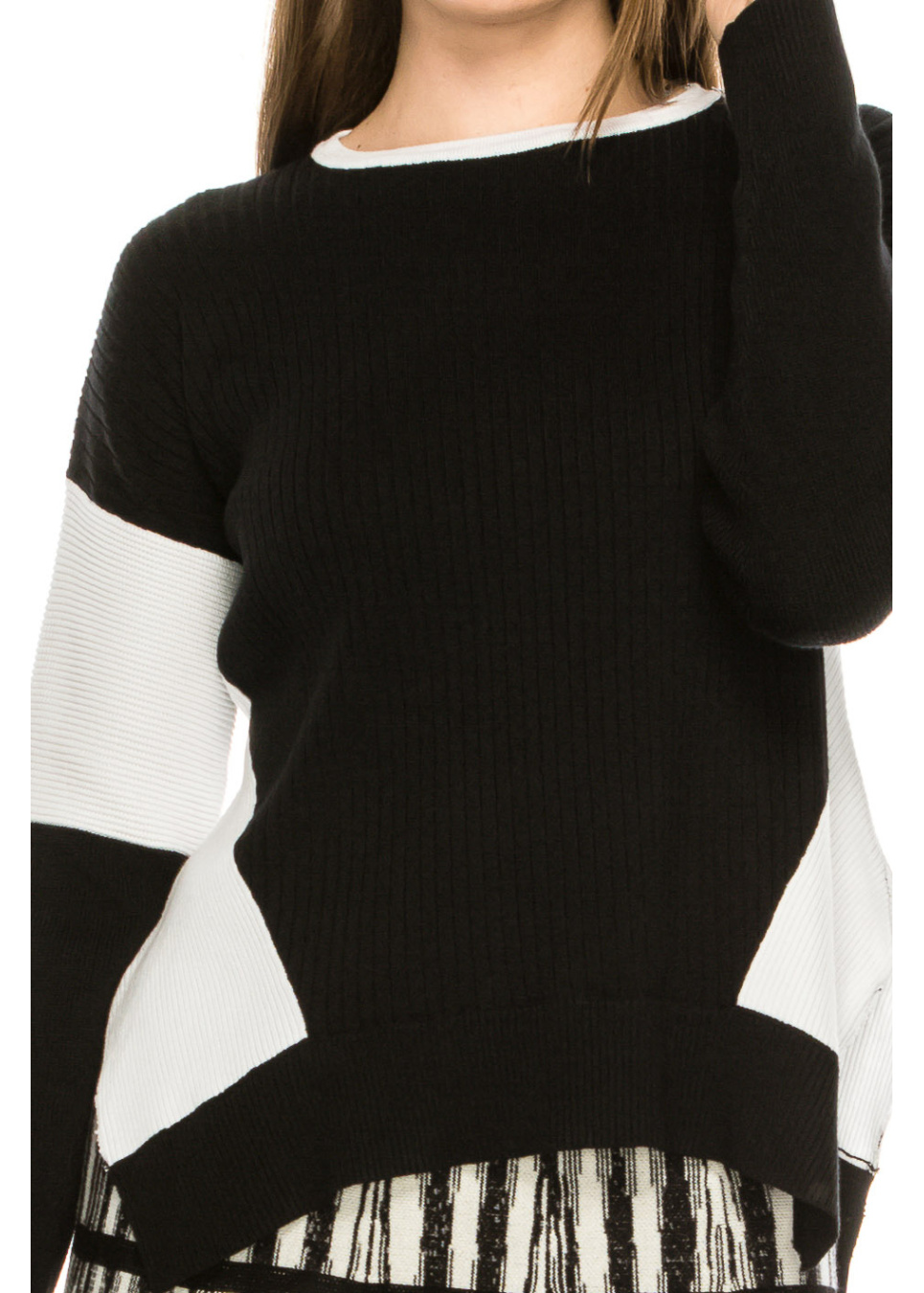- Knit top with color-blocked out sleeve