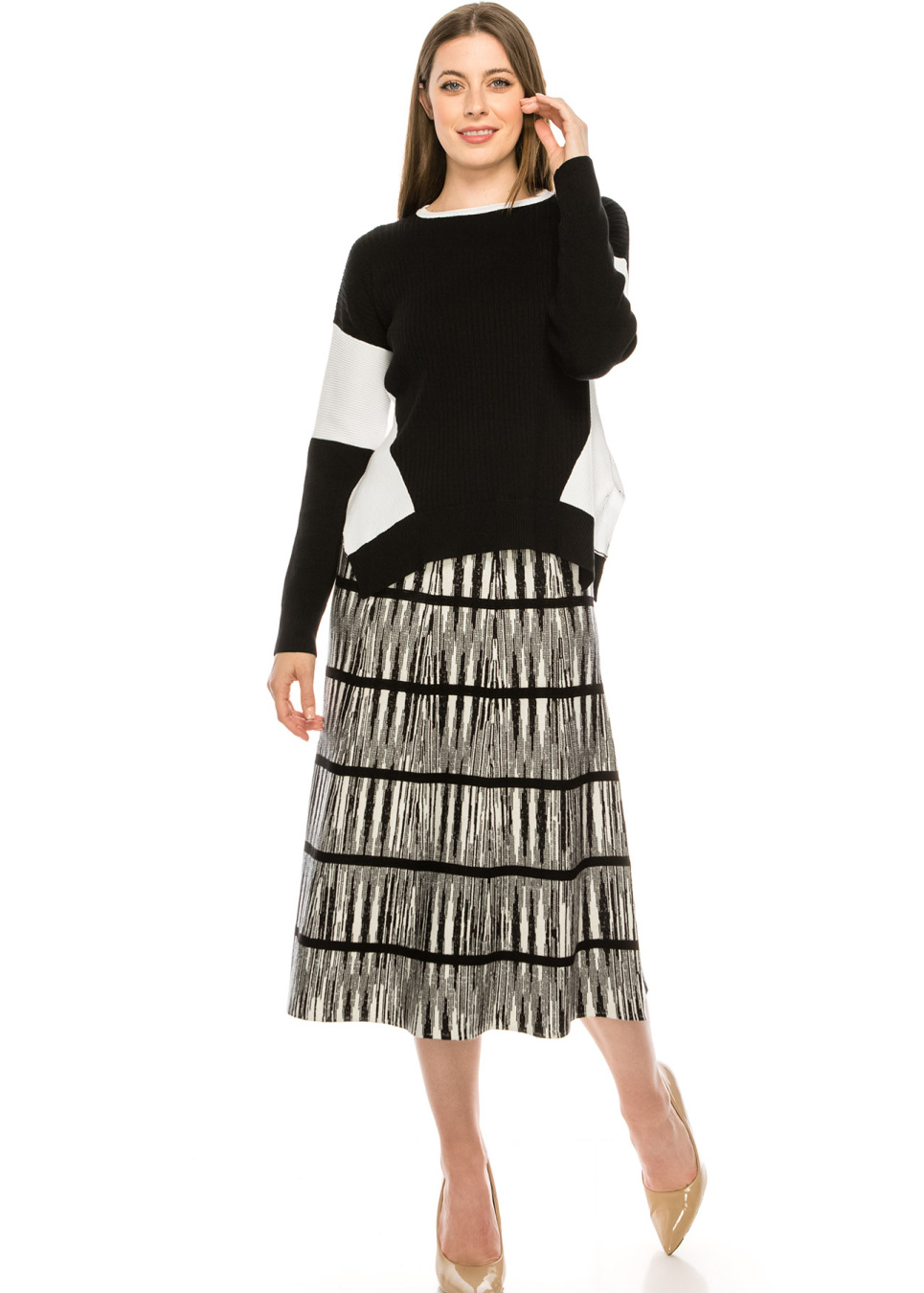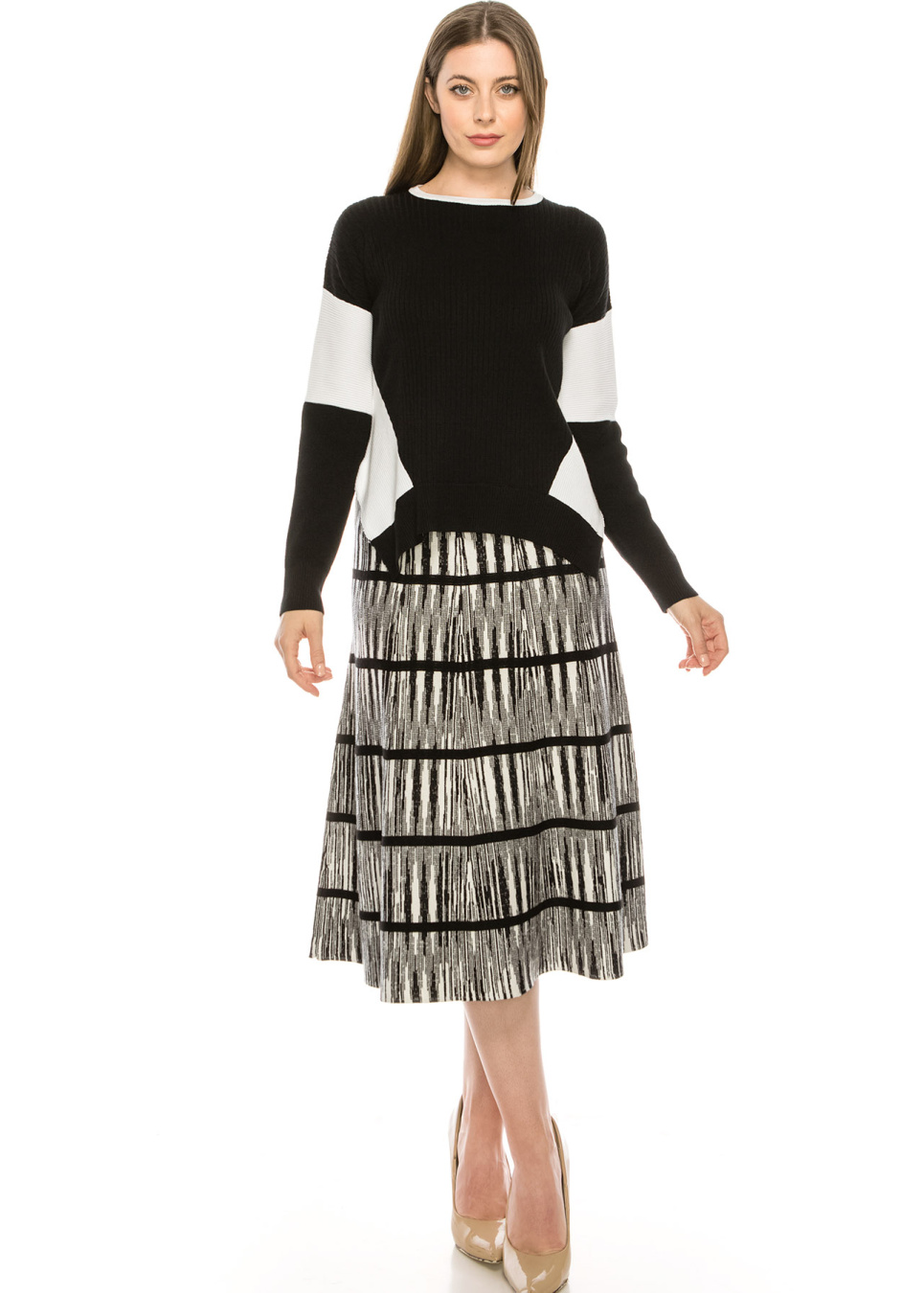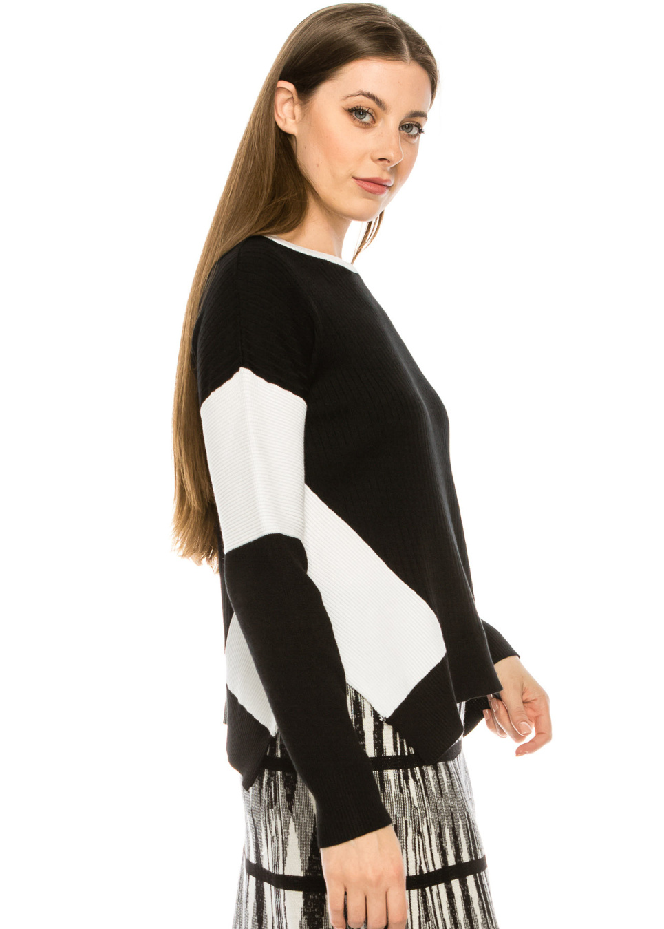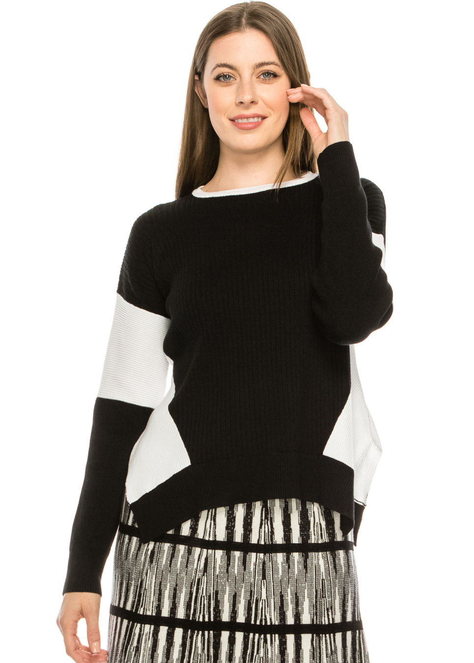 - Knit top with color-blocked out sleeve