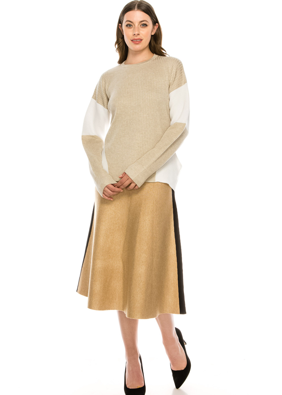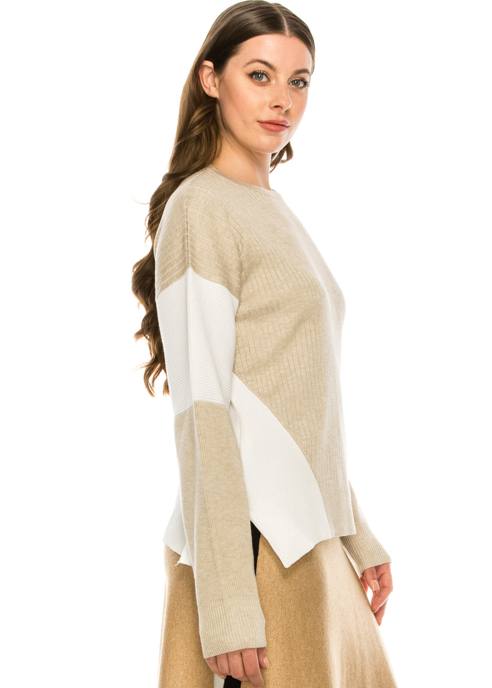 Blocked Sleeve Top Oatmeal