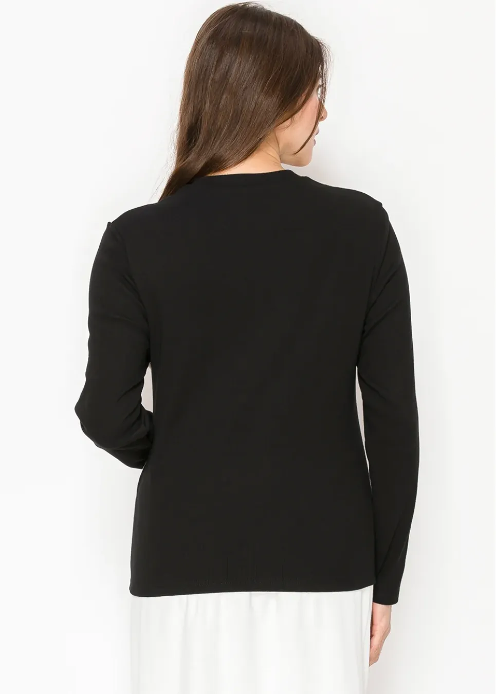 Long Sleeve Black Pullover with Denim Trim