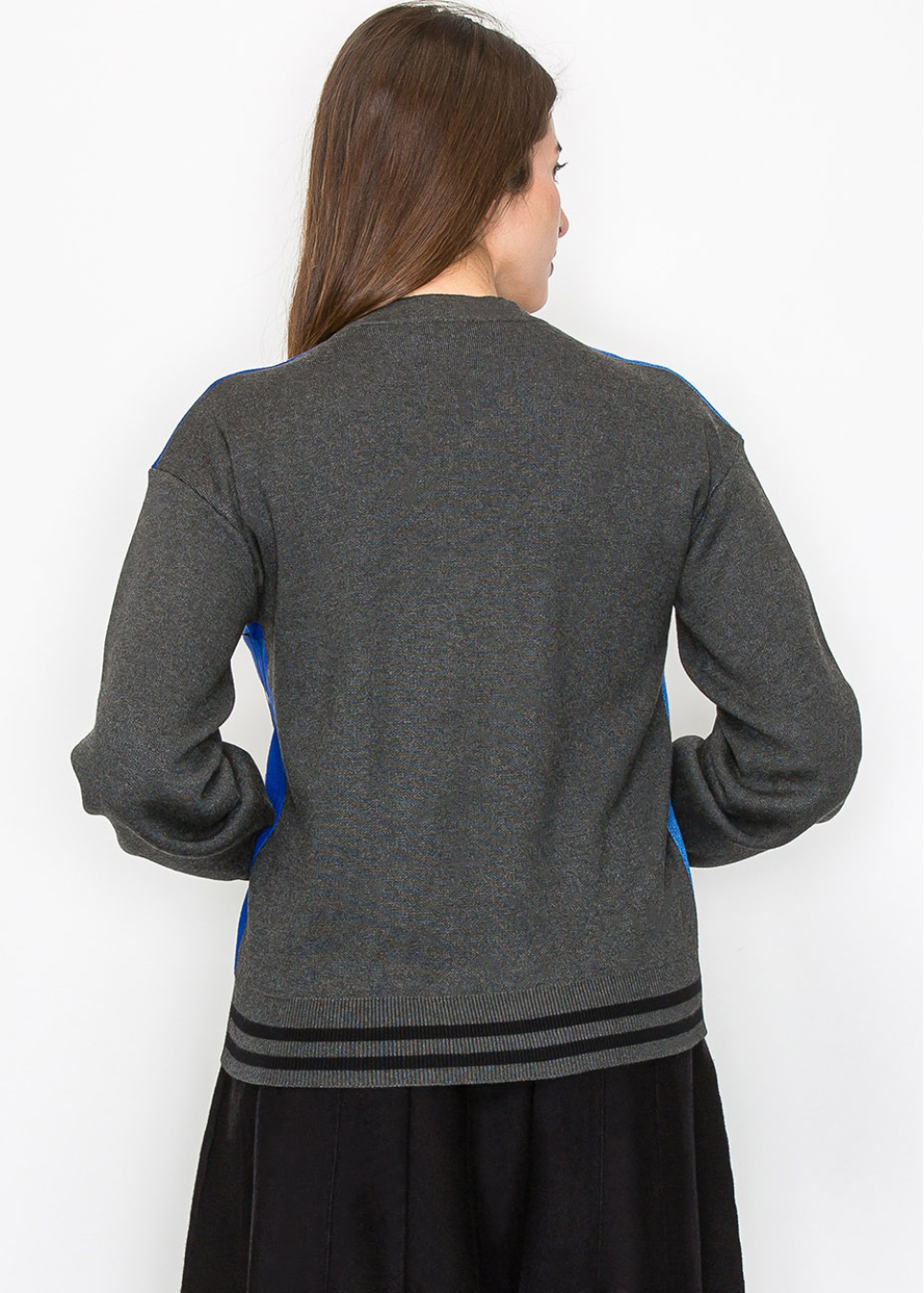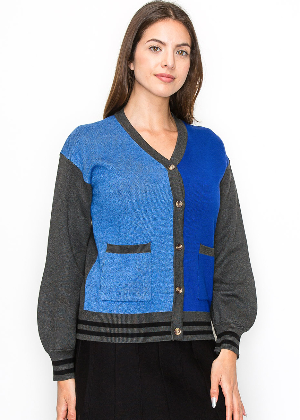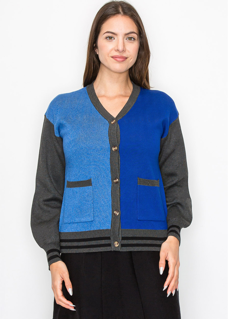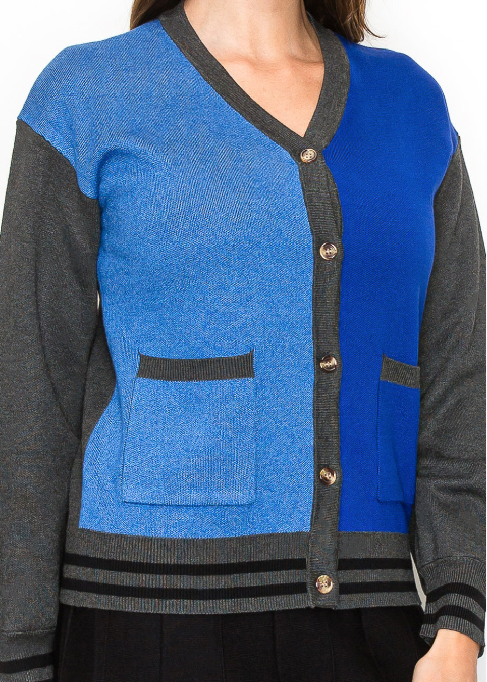 Blue and Grey Color-Block Cardigan