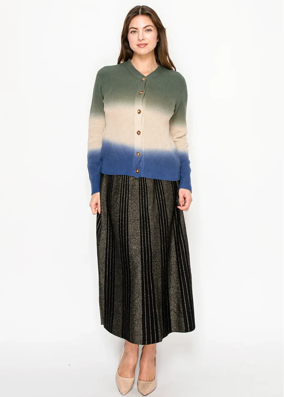 Blue and Olive Dip-Dye Cardigan with Buttons