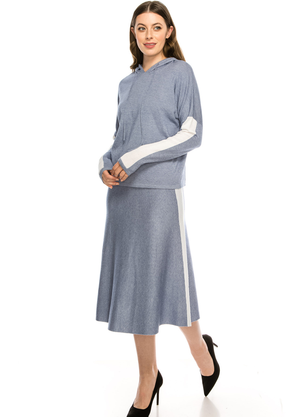 Blue and White Skirt With Stripe Detail