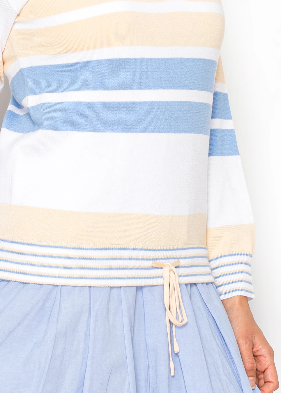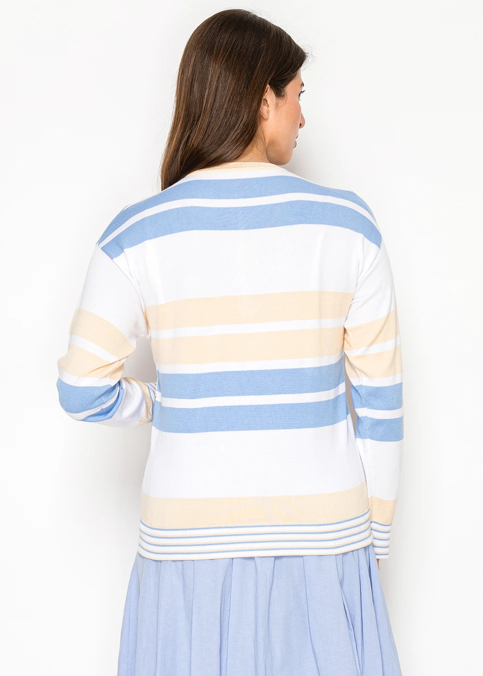 If you like pieces that look styled but feel easy, this is a natural pick. The soft stripes add dimension, and the adjustable hem lets you shape it just the way you prefer.