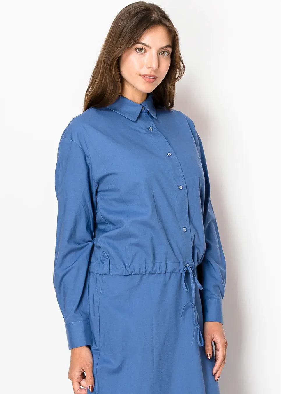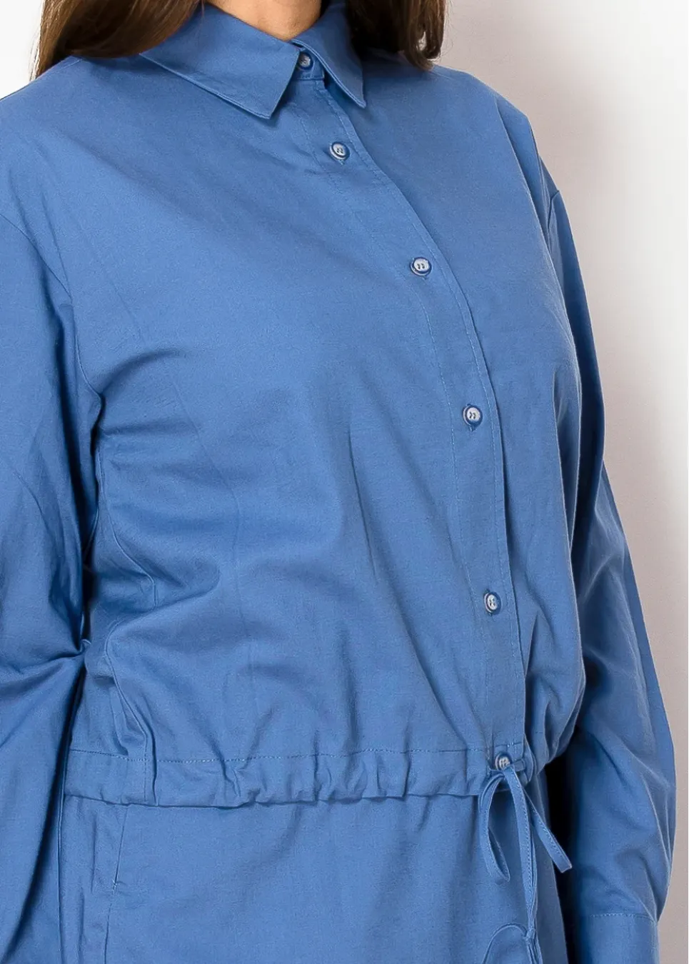 This lightweight linen shirt combines classic style with a modern twist. The button-down front and adjustable drawstring waist add both structure and flexibility, making it perfect for a relaxed yet polished look.
