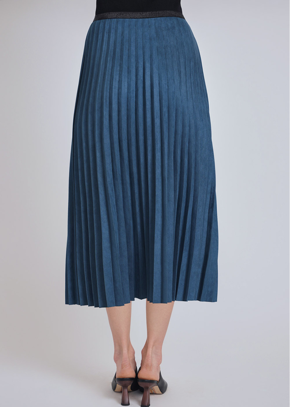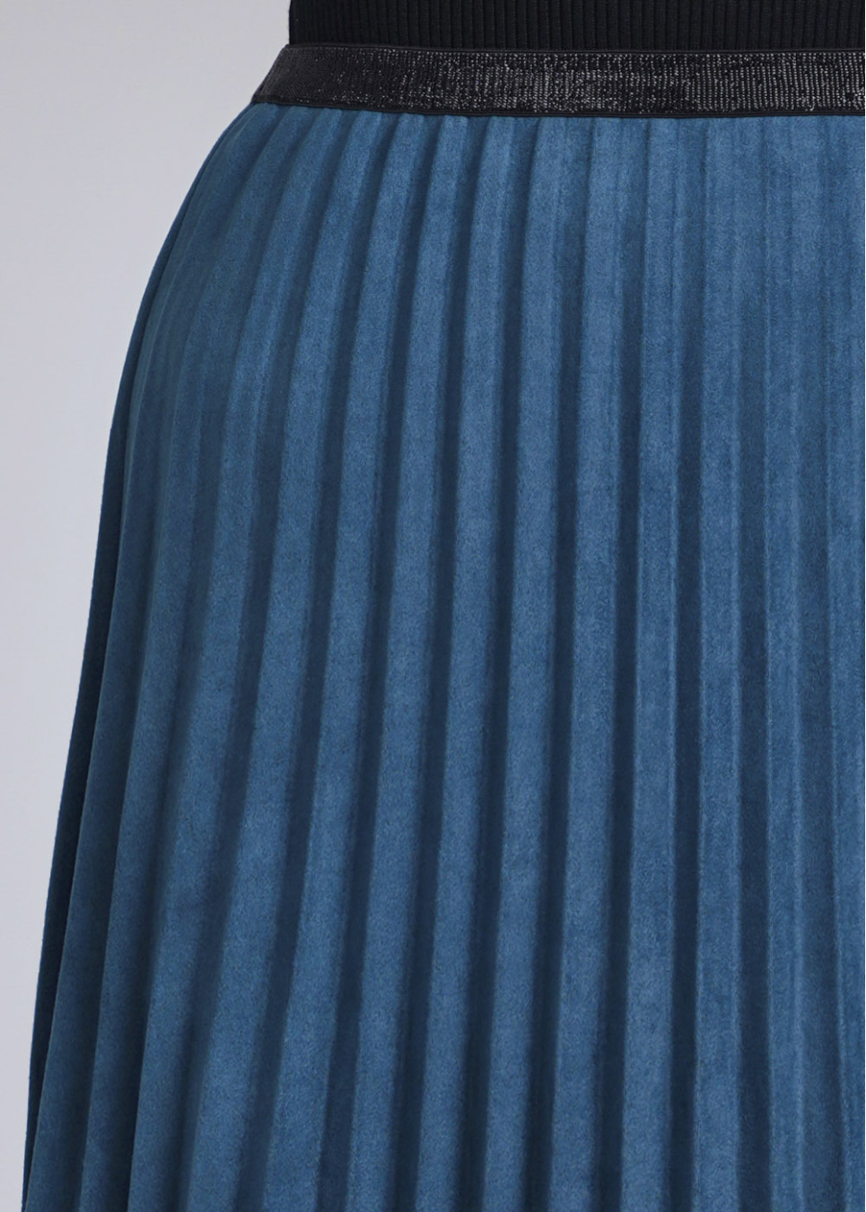 - Blue suede pleated skirt