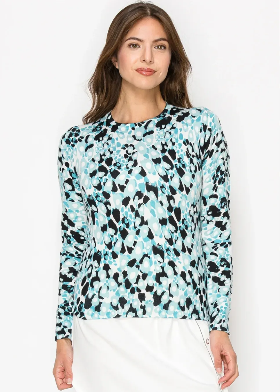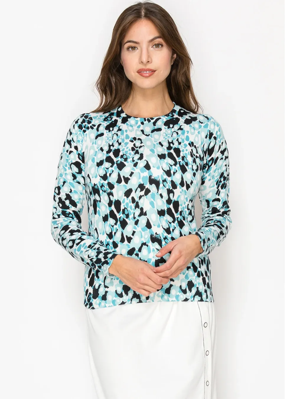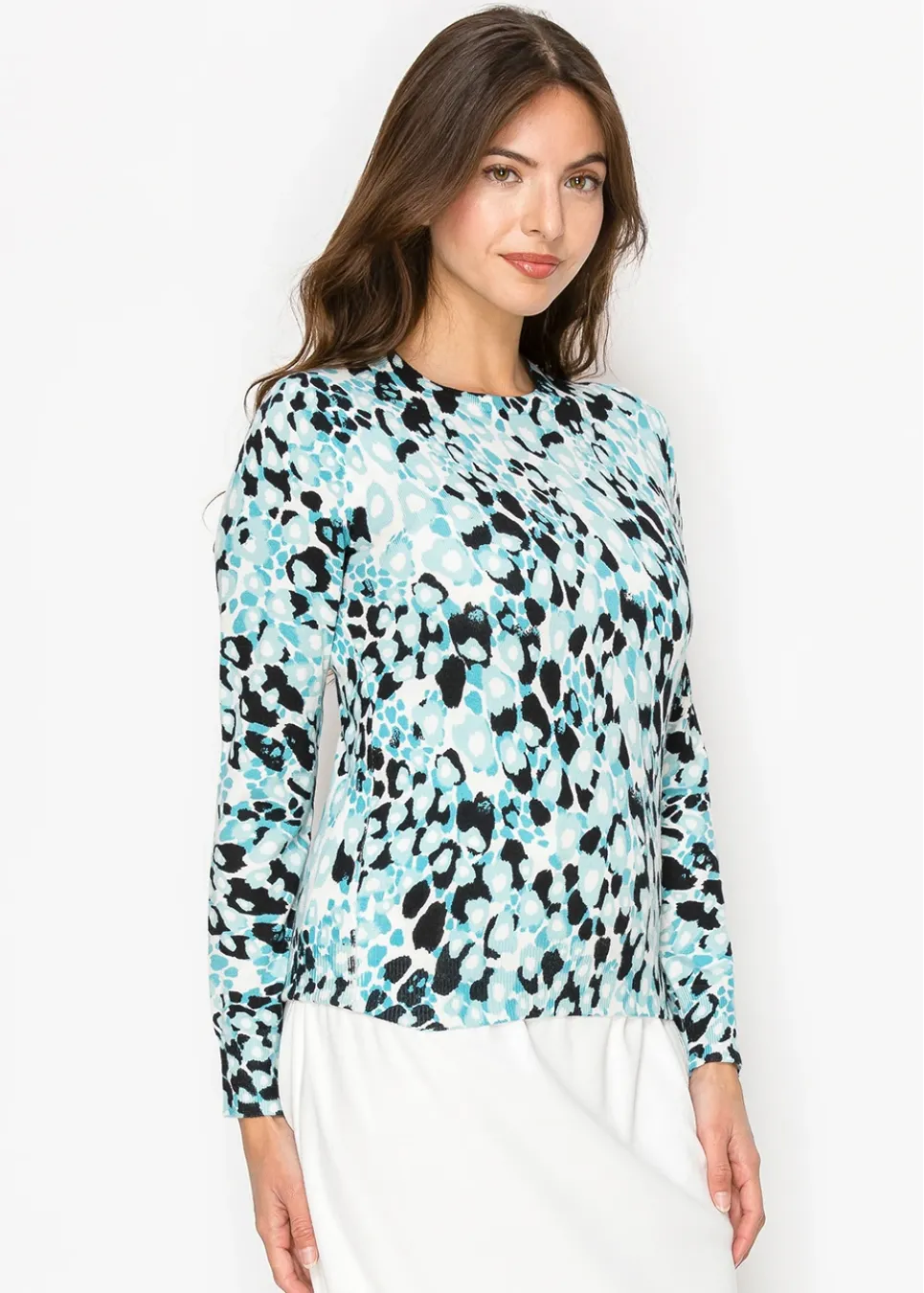 Soft, lightweight, and full of personality—this sweater brings a fresh take on classic prints. The mix of blue, black, and white gives it a cool, effortless look that pairs easily with neutrals.