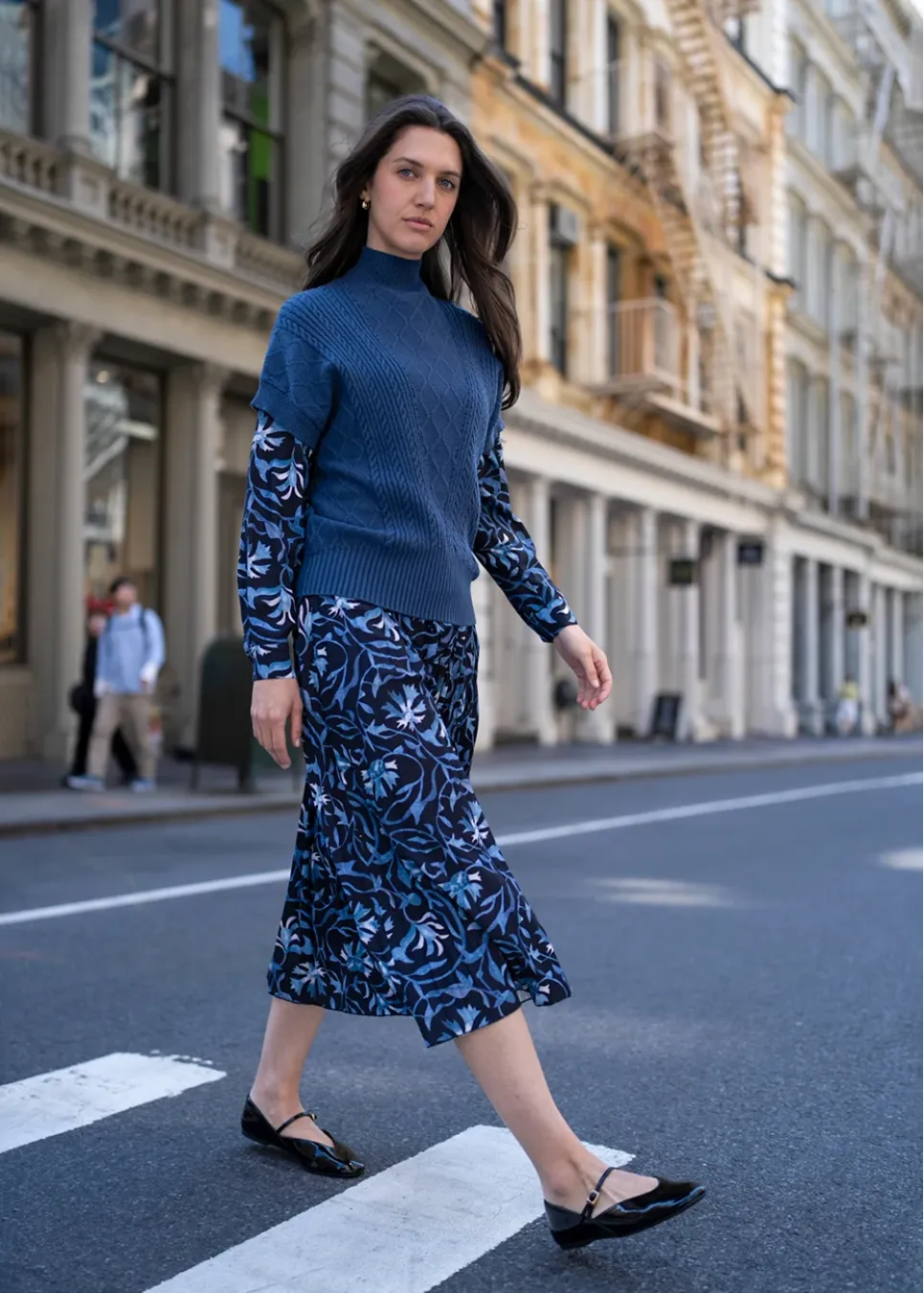Your favorite floral dress just got cooler — literally. Add the knit vest and you’ve got an outfit that feels layered and city-ready without overthinking it.