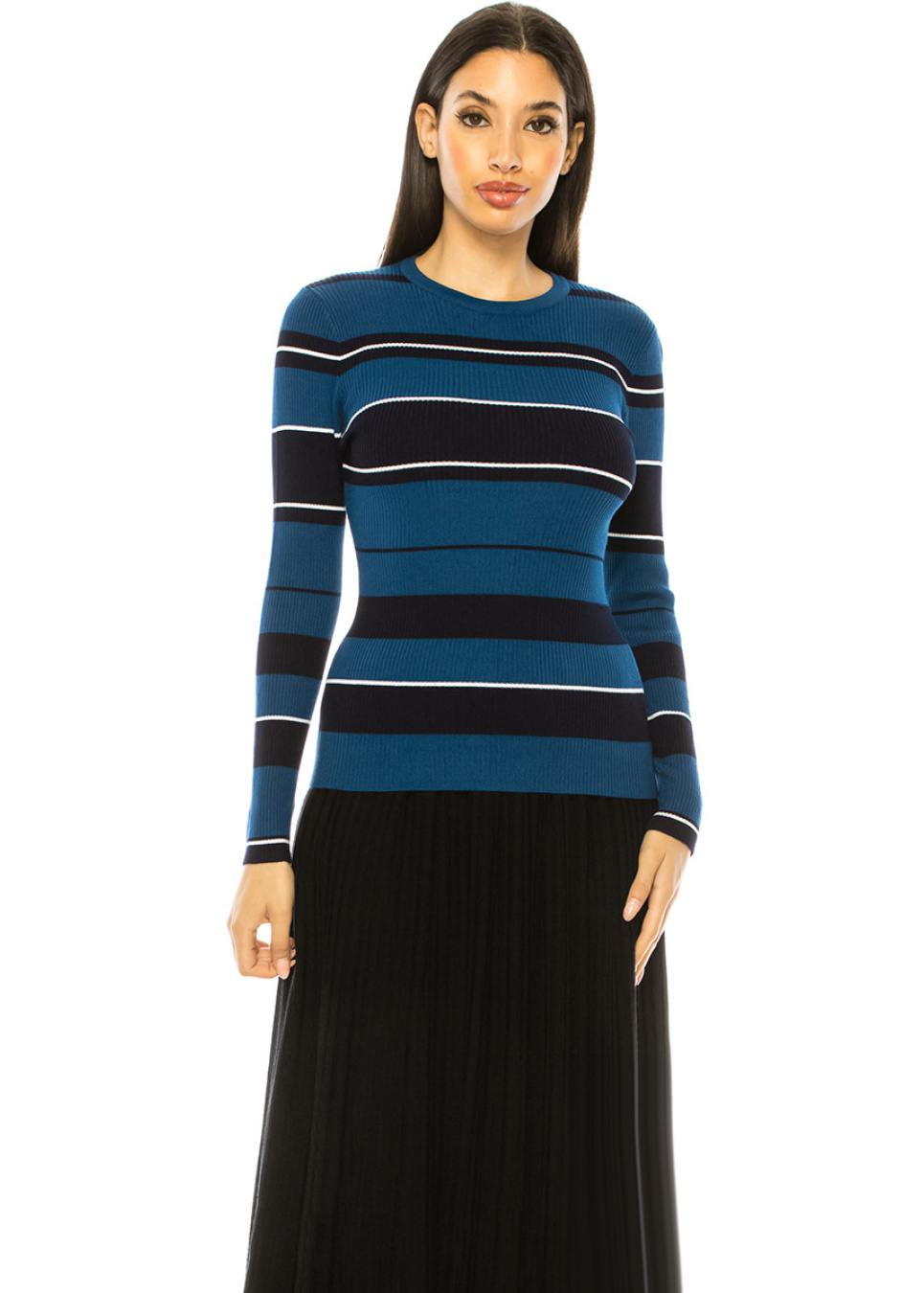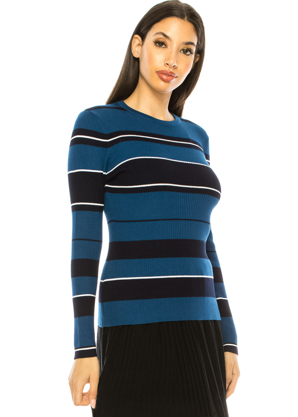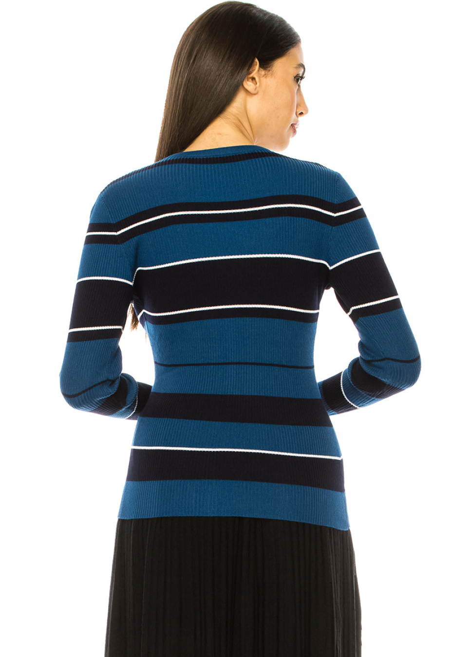 Blue Ribbed Sweater With Stripes