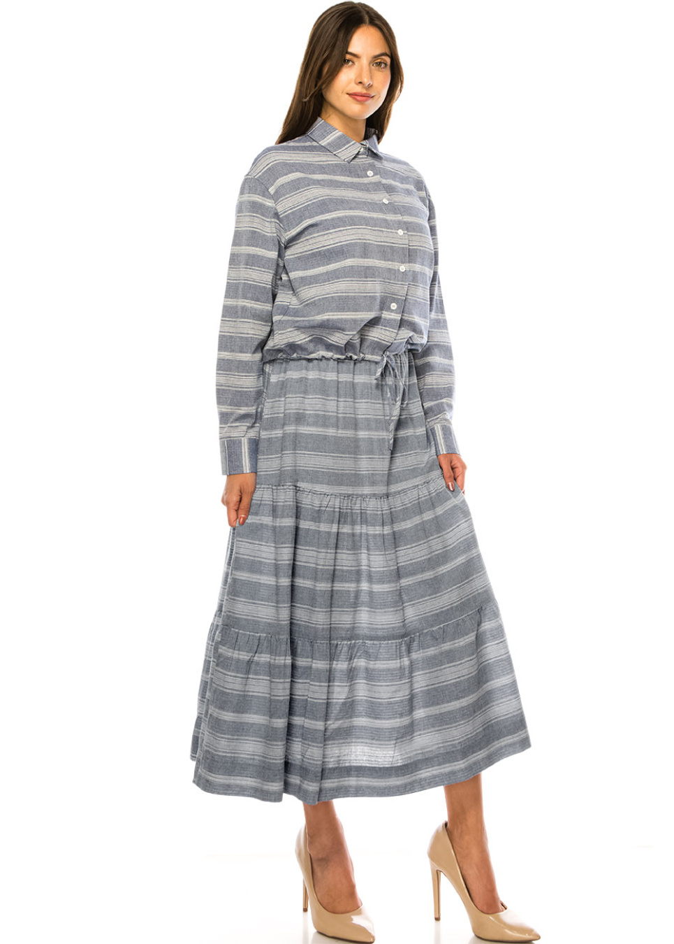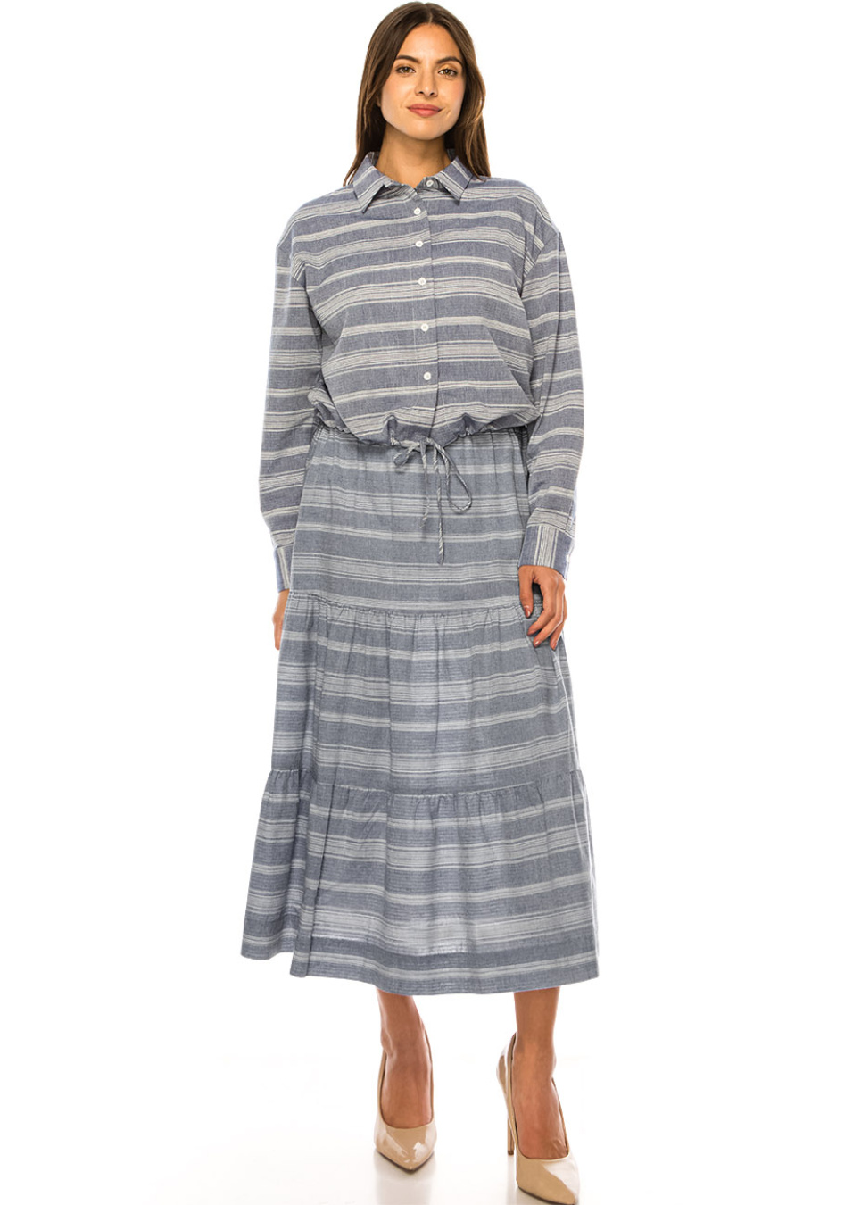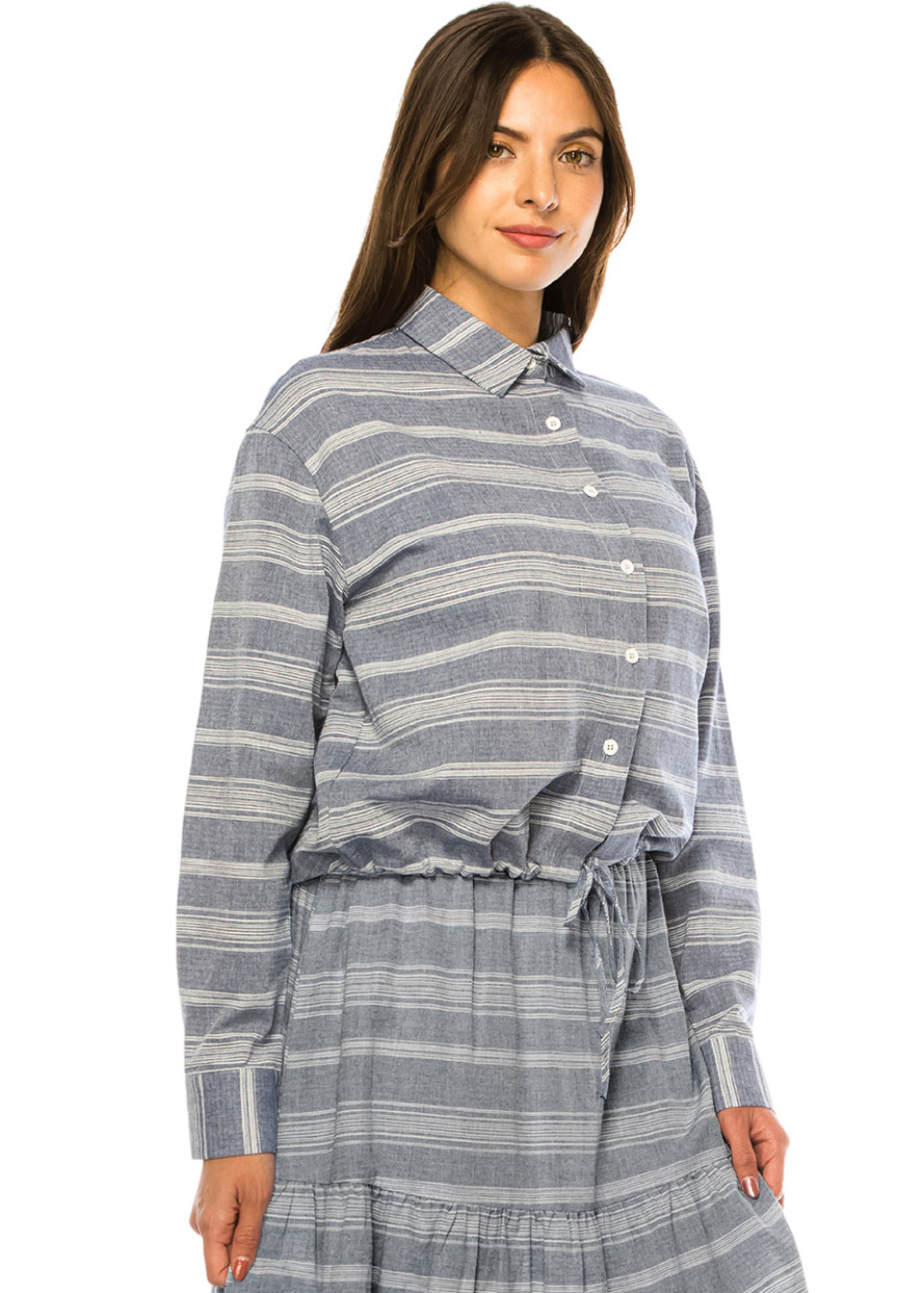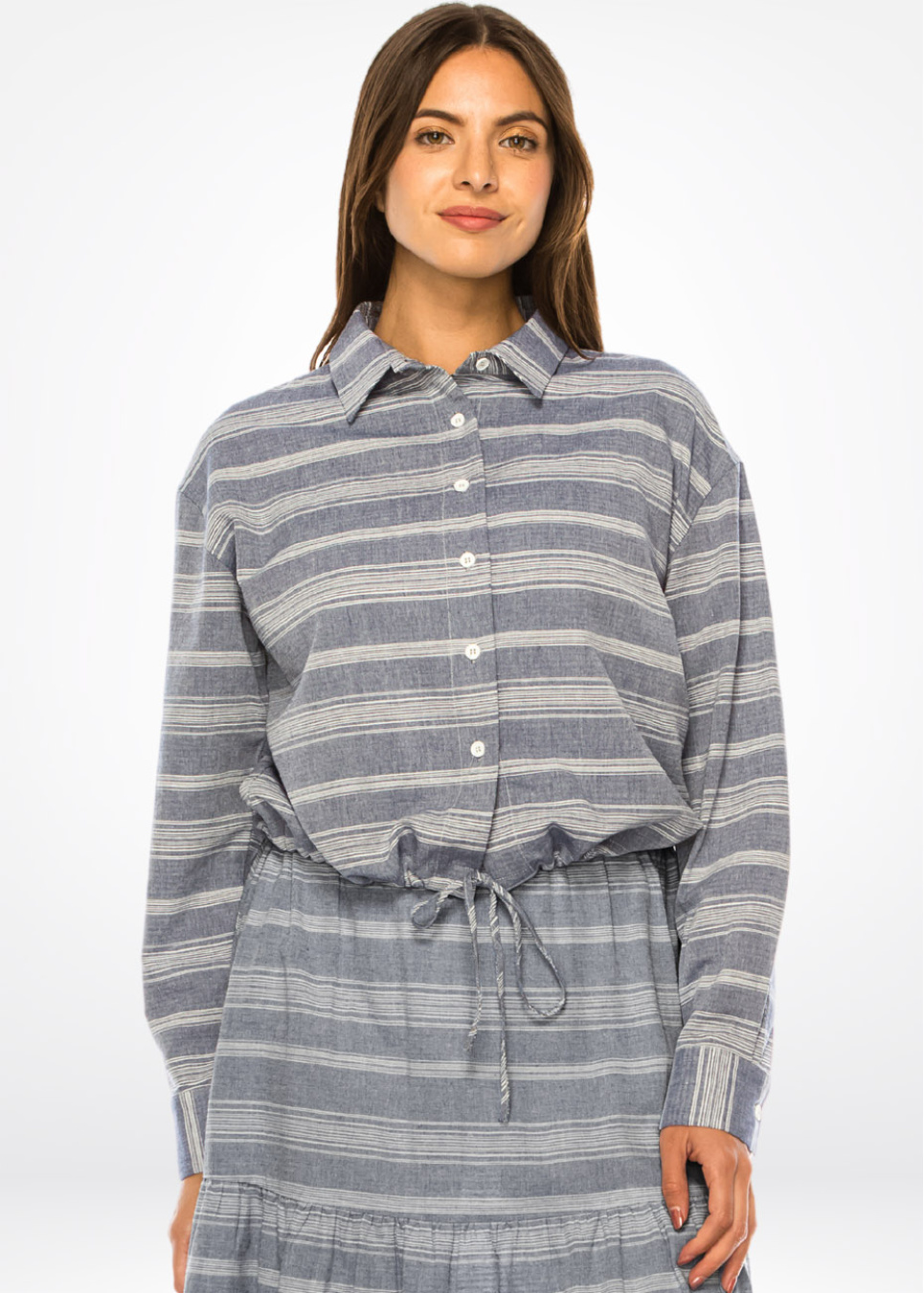 Blue Striped Tie-Waist Shirt