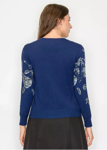 Blue Sweater with Silver Floral Pattern