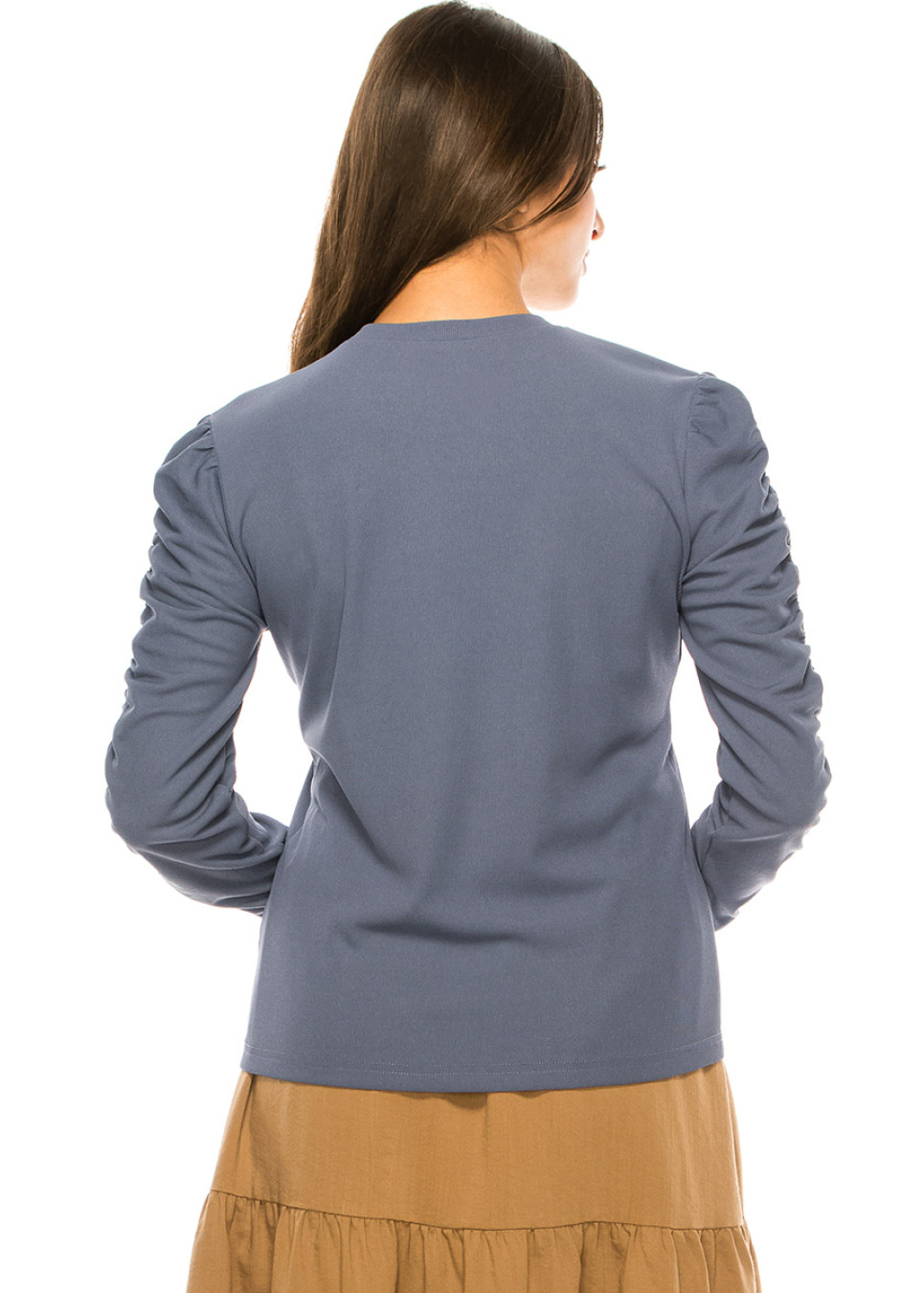 Blue T-Shirt With Draped Long Sleeves