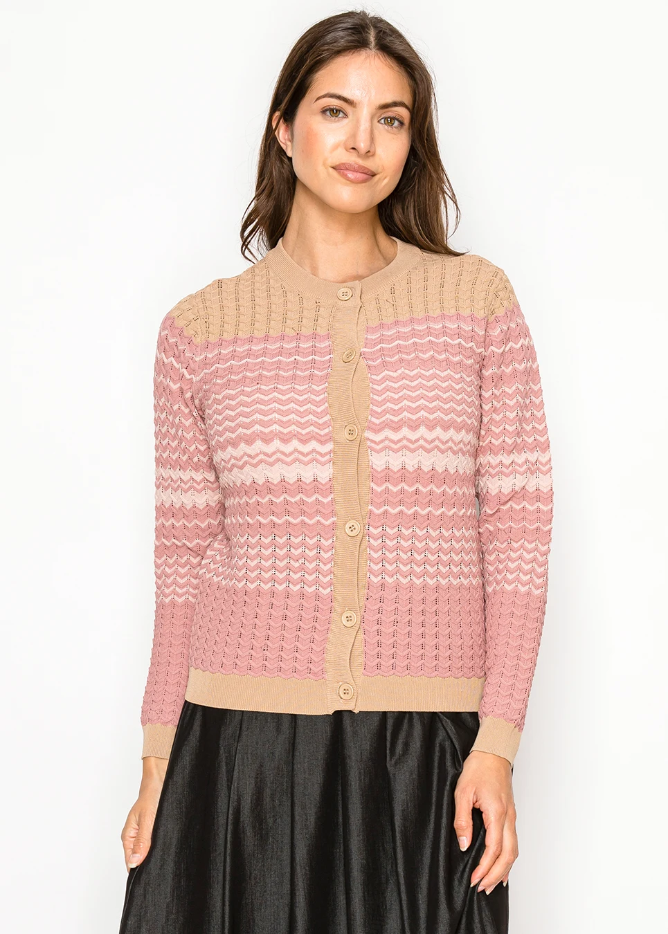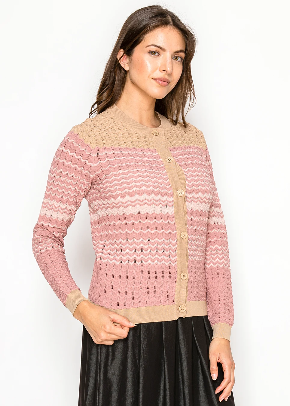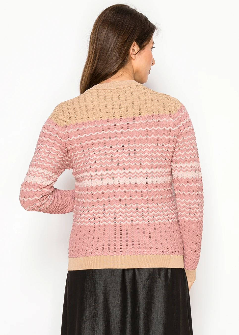 An elevated knit with timeless charm. The textured detailing and refined color combination make it feel quietly sophisticated and thoughtfully designed.