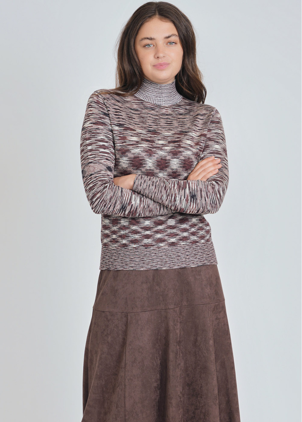 Mock Neck Colorblock Sweater – Blue & Mocha