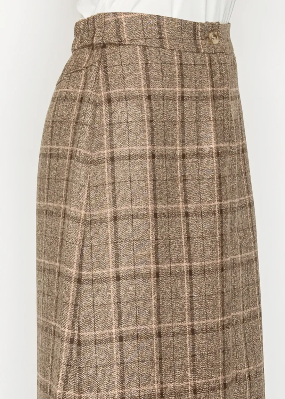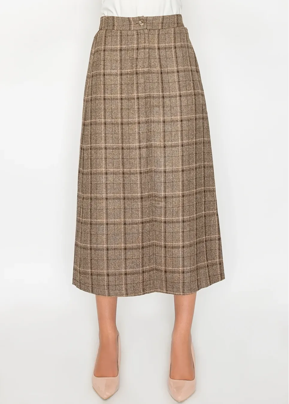 Brown plaid A-line skirt with button waist