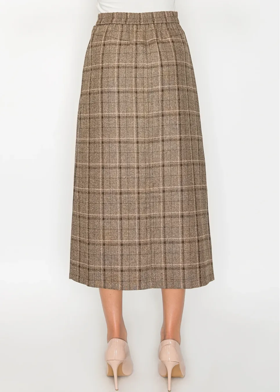 The kind of skirt that always looks right. The A-line shape skims smoothly and the soft plaid brings a cozy, polished vibe.