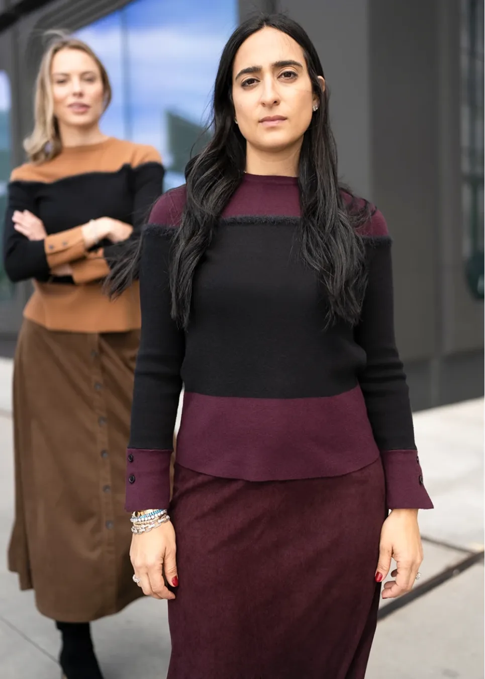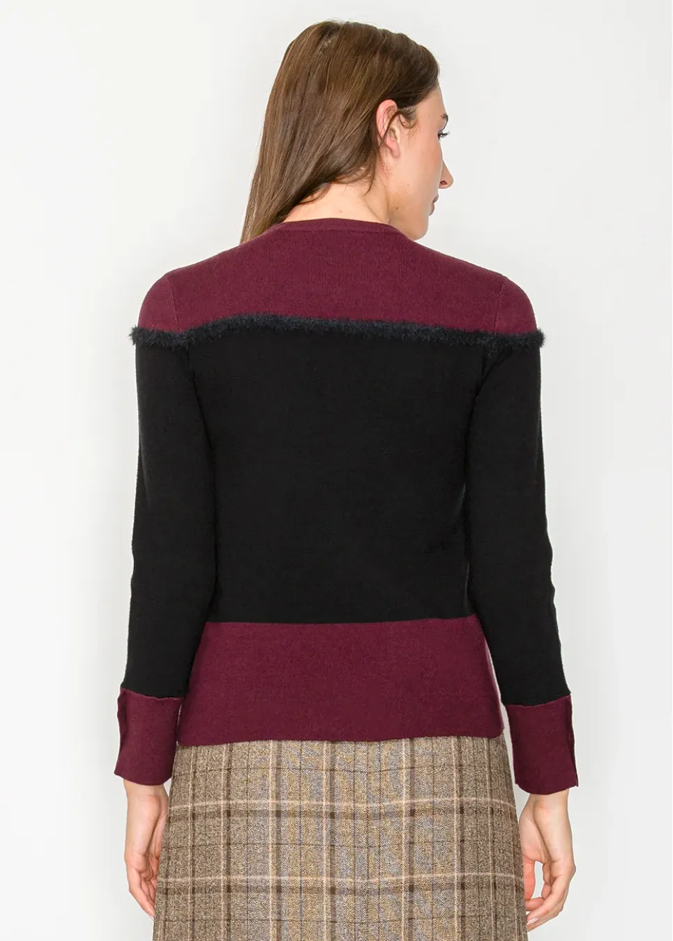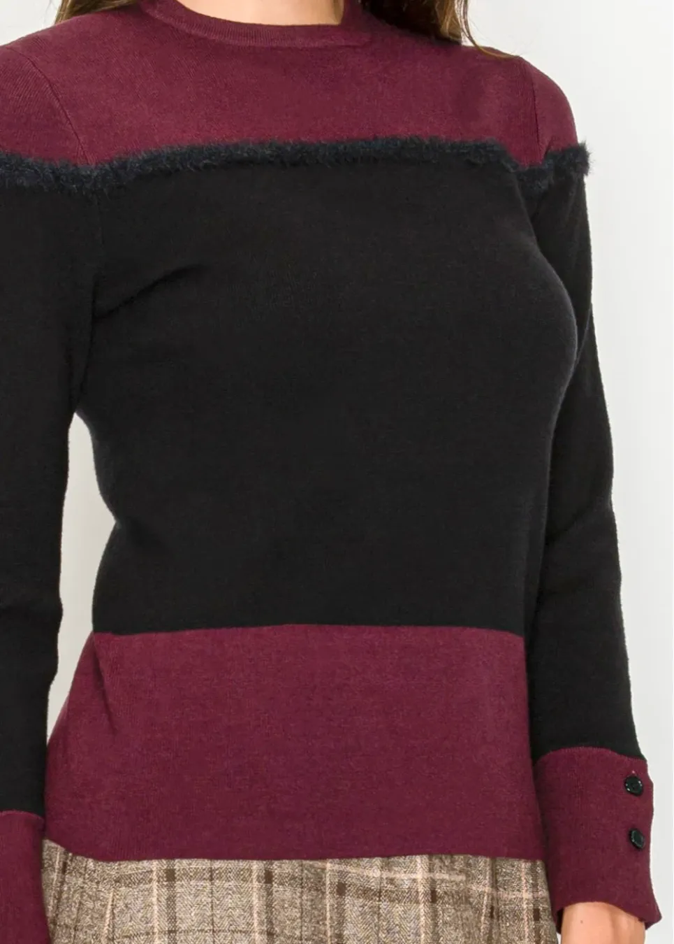 A clean-cut look with subtle texture. This colorblock sweater features soft contrast and a fuzzy trim detail that adds just enough edge.