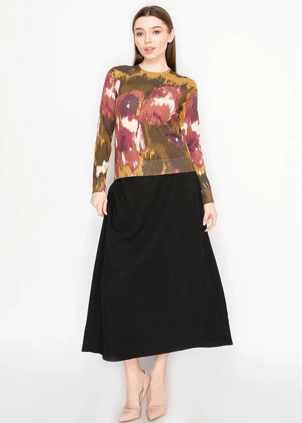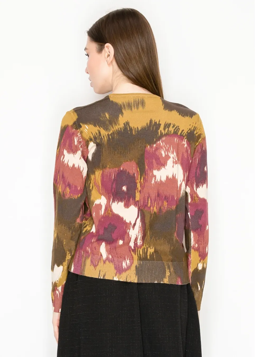 This sweater feels like art you can wear, with brushstroke colors that bring warmth and energy. It’s the piece that makes a simple outfit instantly interesting.