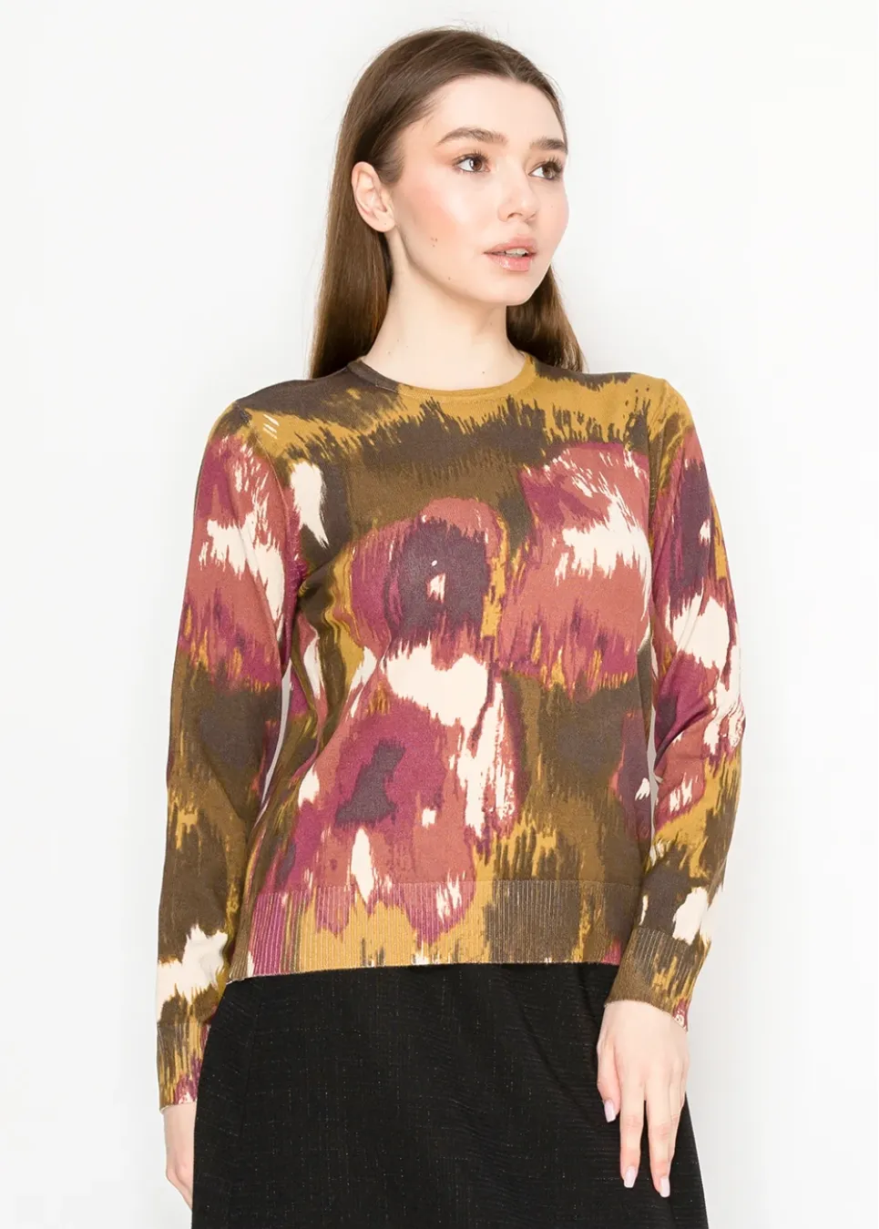 Abstract Floral Sweater in Burgundy Mix