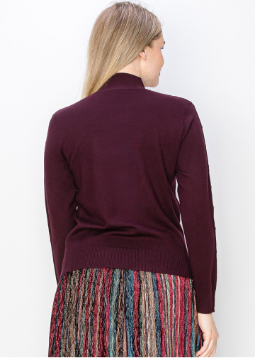 Burgundy Mock Neck Sweater with Buttoned Sleeves