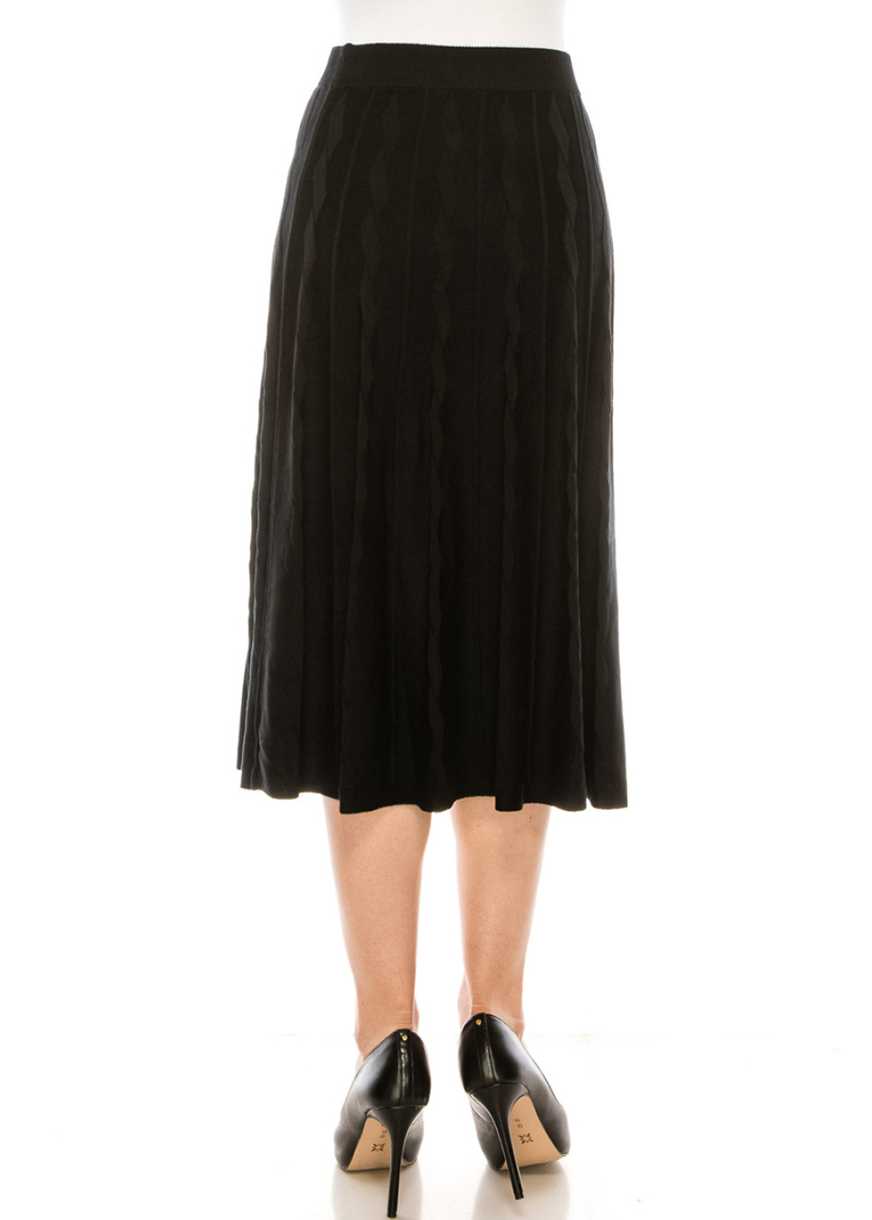 This midi knit skirt is the ideal garment for autumn chilly days. The breadth of the hem ensures that it drapes gracefully, hiding the knee. The use of a rubber band inside the waistline provides a perfect fit, security and comfort.