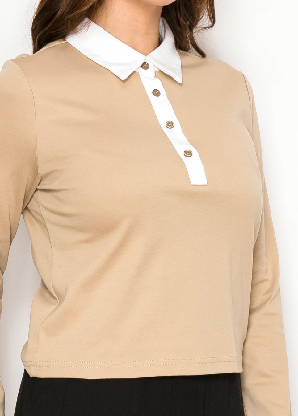Camel Cotton Polo Long Sleeve Tee