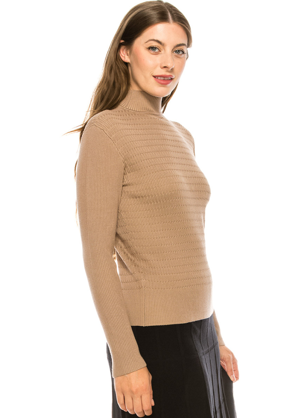 - Classic camel mock neck sweater