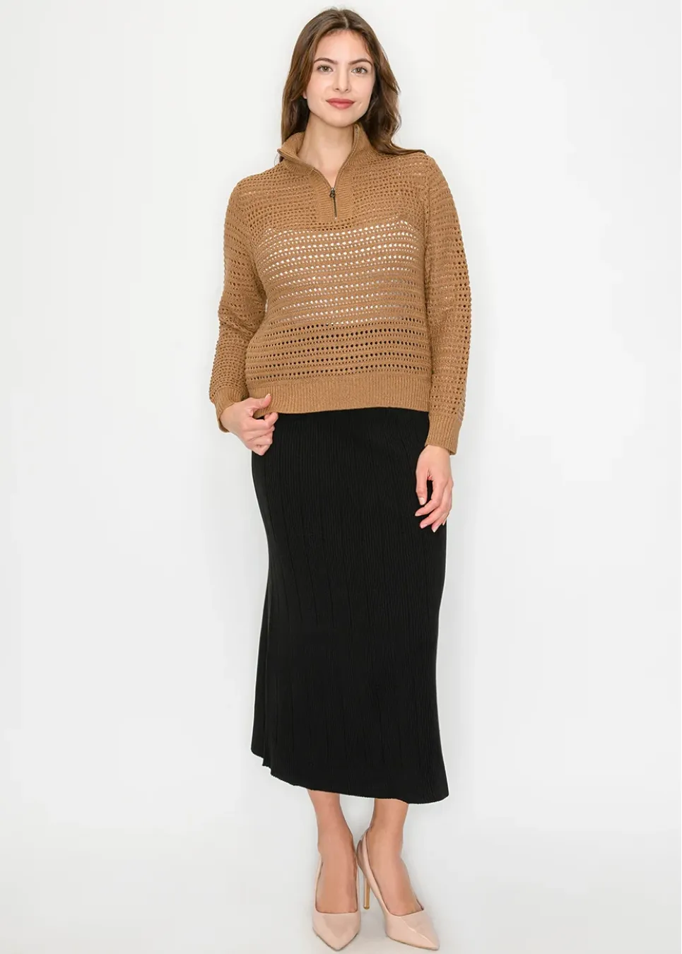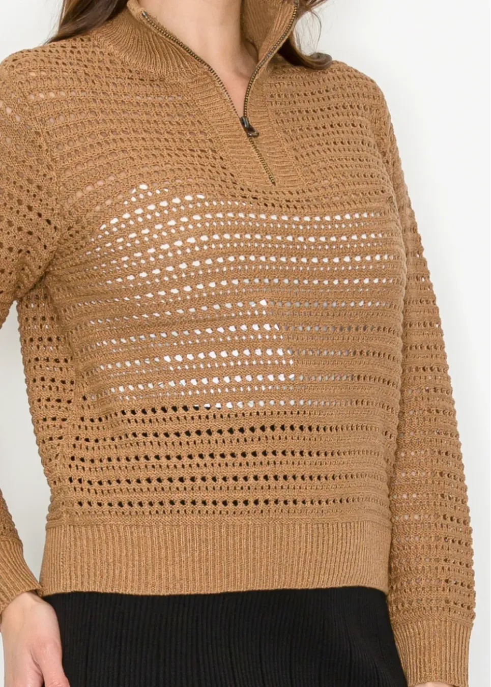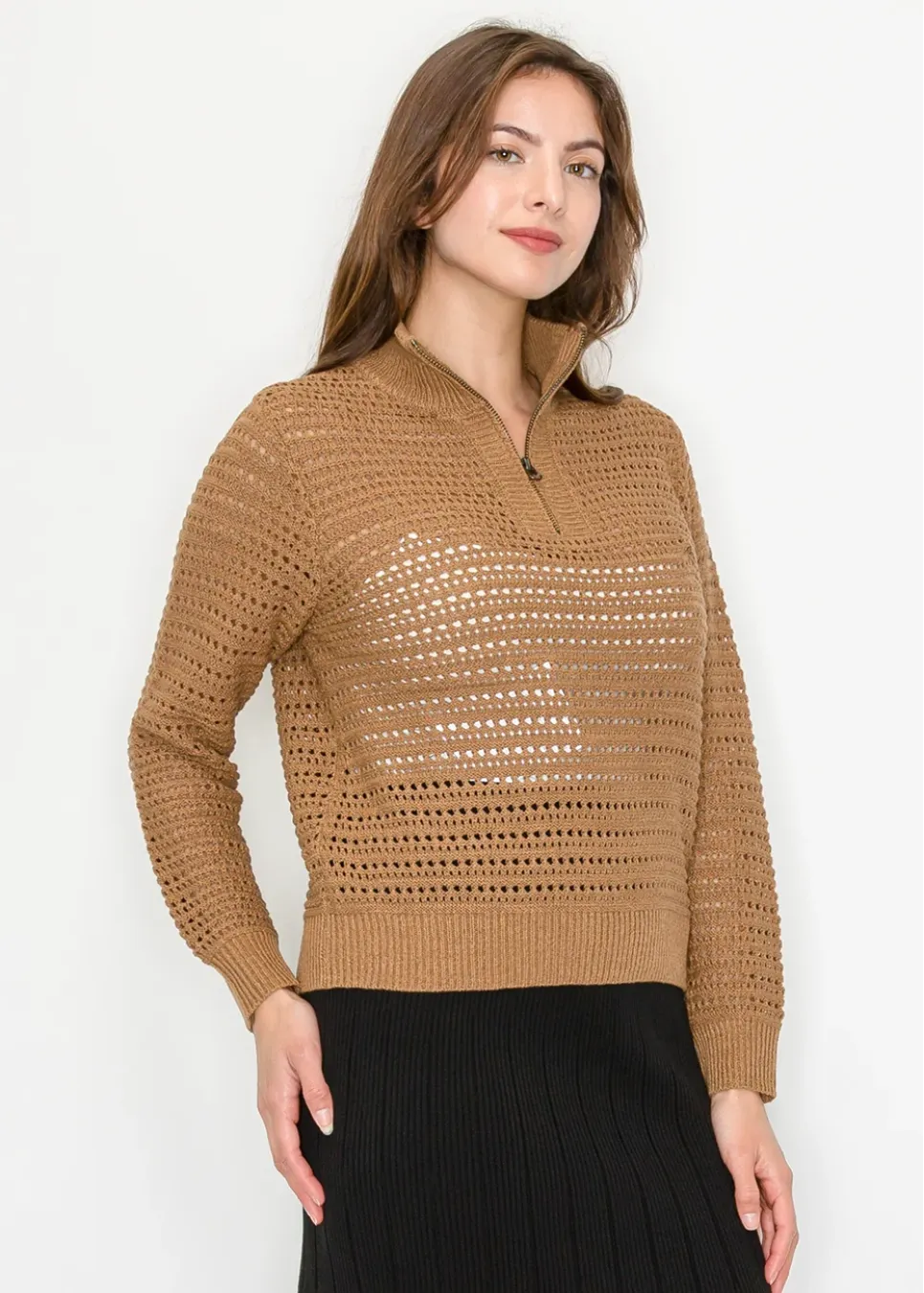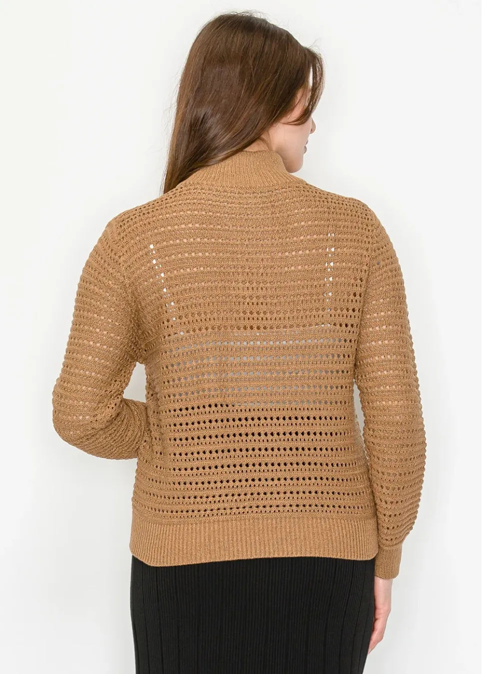 Made from a breathable cotton-acrylic blend, this sweater balances softness and durability. The open knit offers ventilation, while ribbed cuffs and hem keep the fit neat.