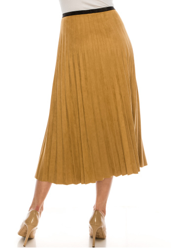 - This pleated skirt is so flattering. We designed this skirt in a way that the it would lay flat on the stomach then starts pleating after.