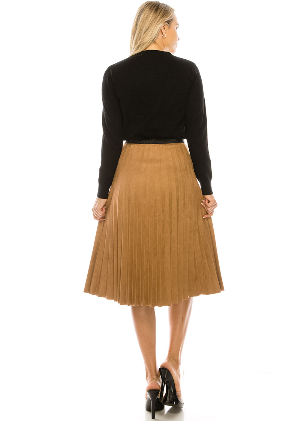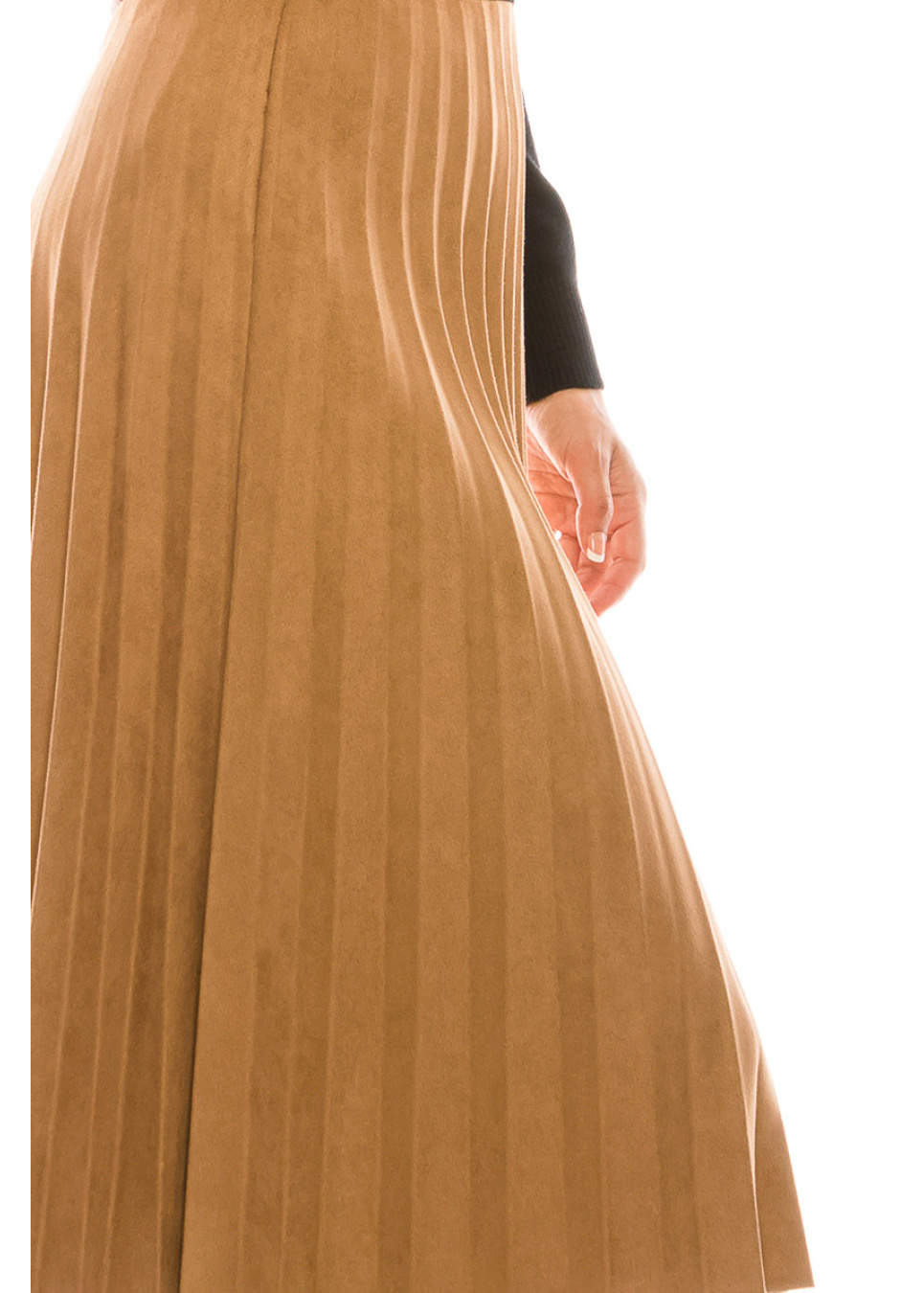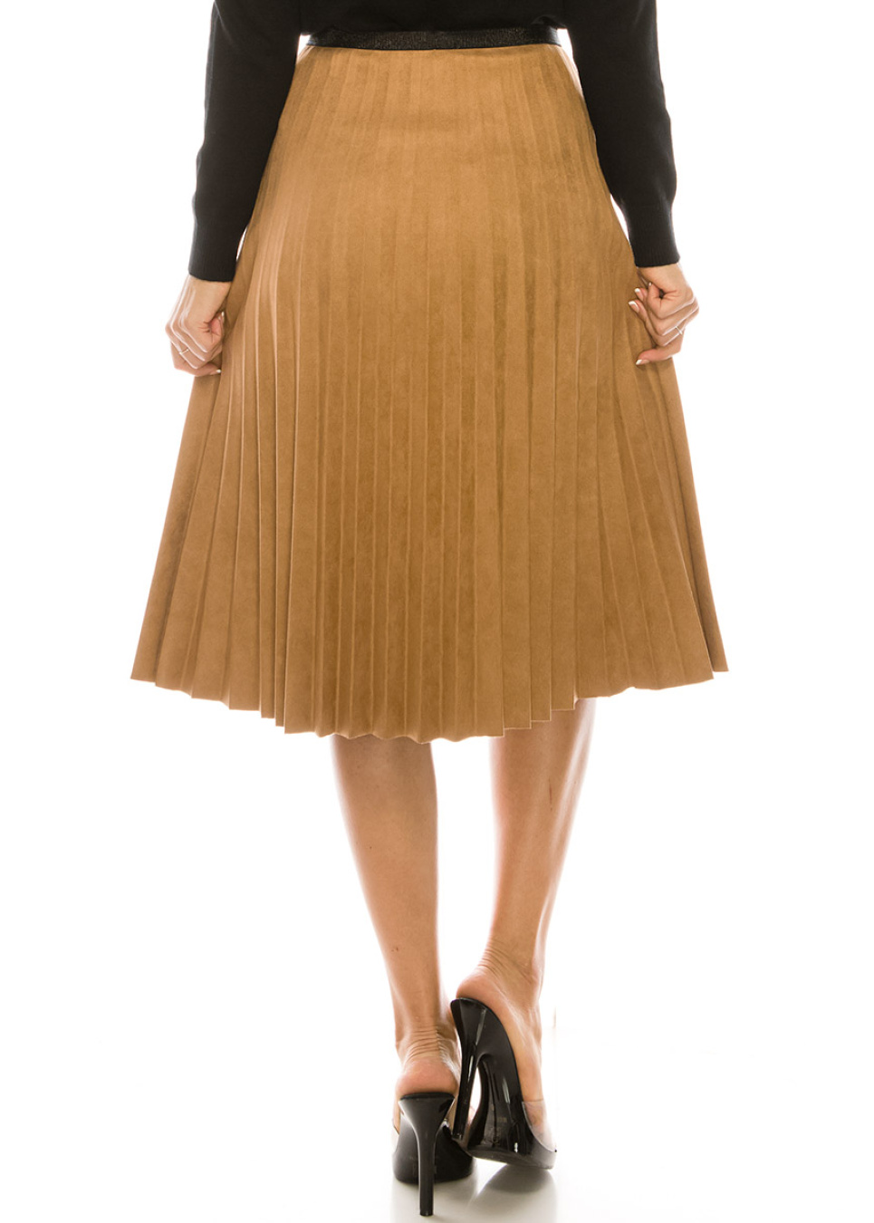 - This pleated skirt is so flattering. We designed this skirt in a way that the it would lay flat on the stomach then starts pleating after.