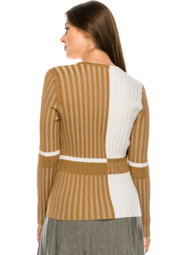 Camel Ribbed Color Block Striped Top
