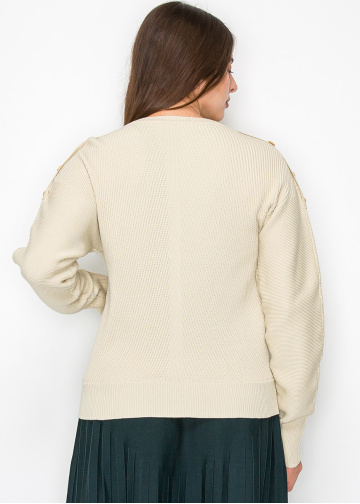 Embrace the Casual Charm of this Button Detail Sweater, designed with comfort and style in mind. The cozy knit texture and buttoned shoulders bring subtle sophistication to a simple silhouette. Its relaxed fit and neutral beige make it an easy layer for a variety of looks, whether you’re dressing up or keeping it casual. Perfect for anyone who loves a modest yet modern sweater.