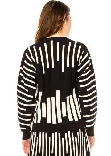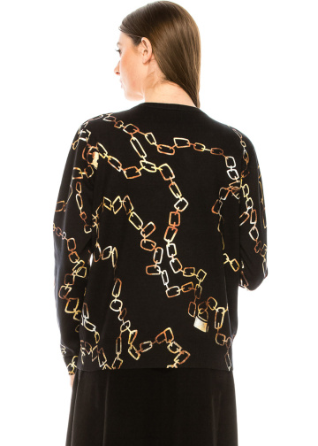 Trendy chain print on the black background has the power to turn your everyday outfit into a statement. Tight-fitting cuffs on the long sleeves, classy crew neck, and relaxed fit guarantee extra comfort.