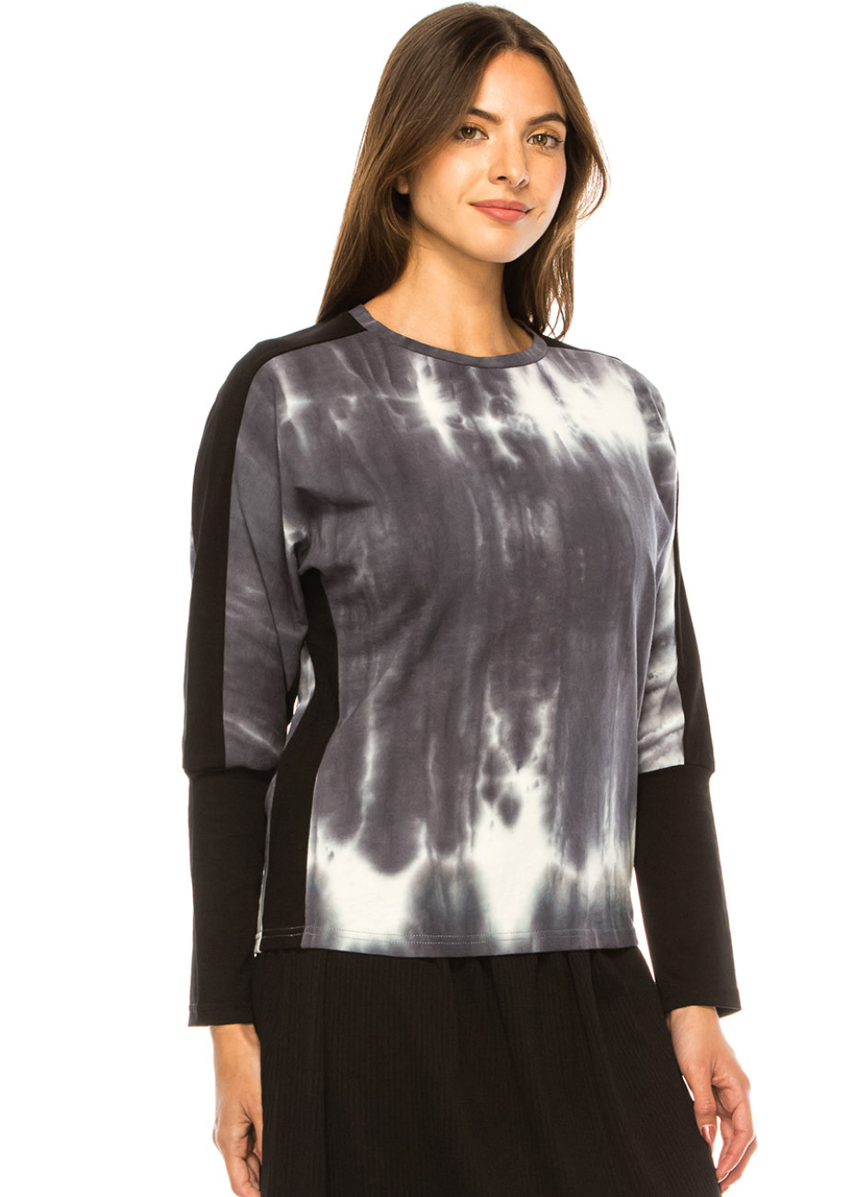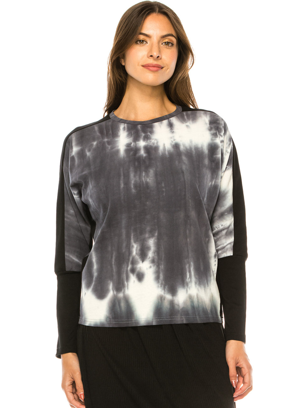 Charcoal Swirl Tie-Dye Long Sleeve Top