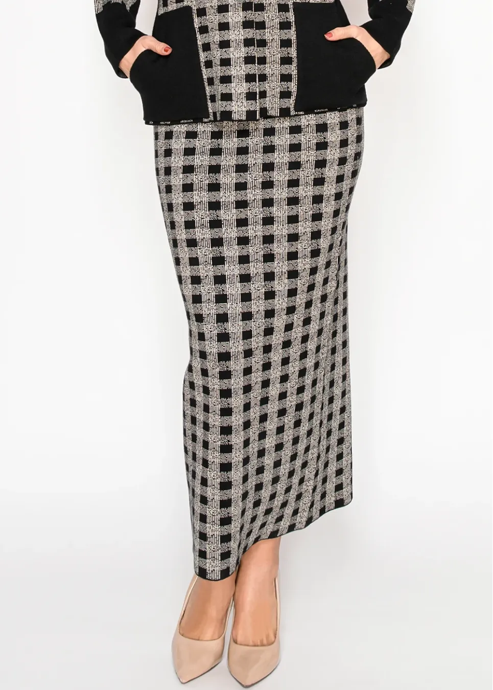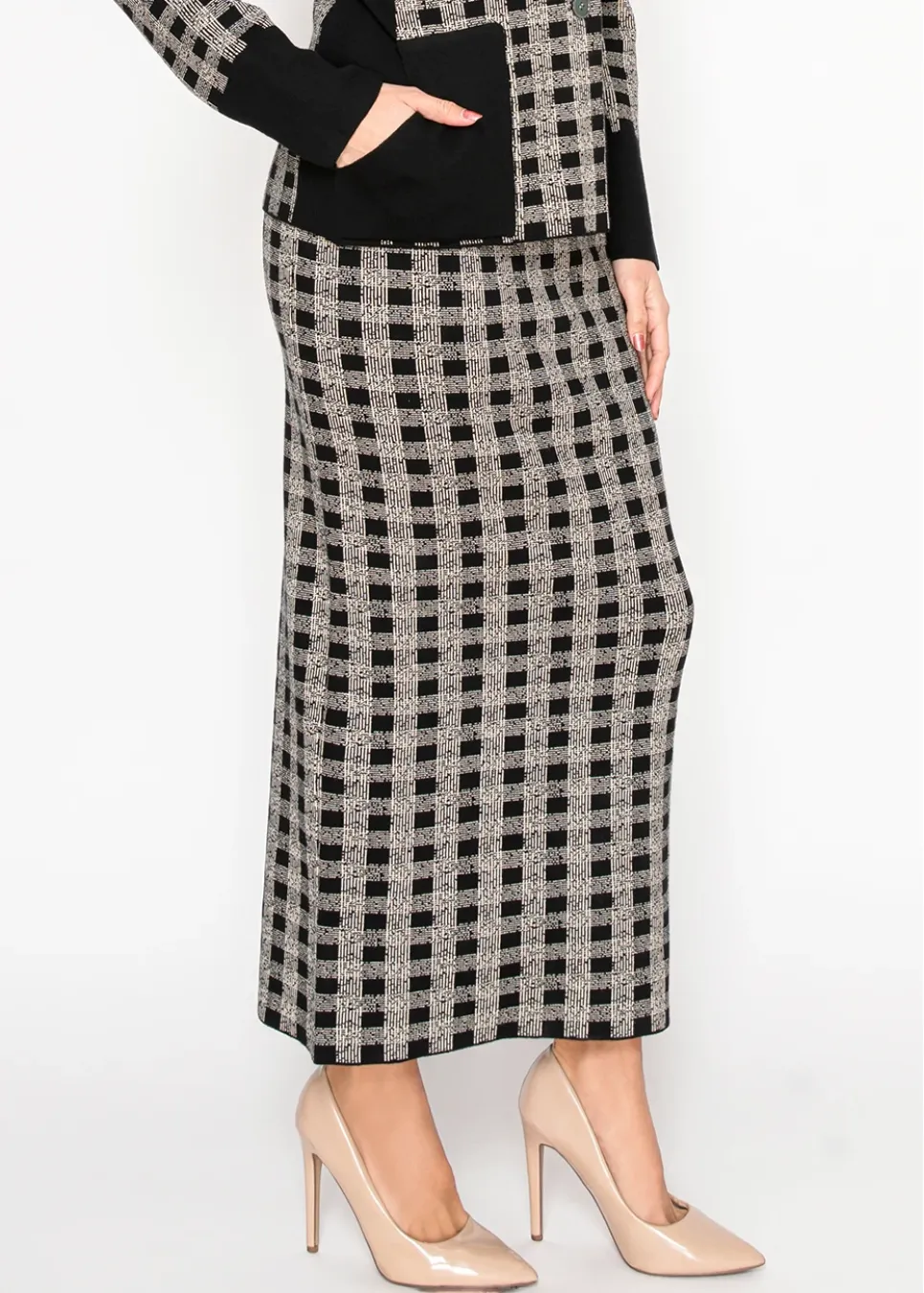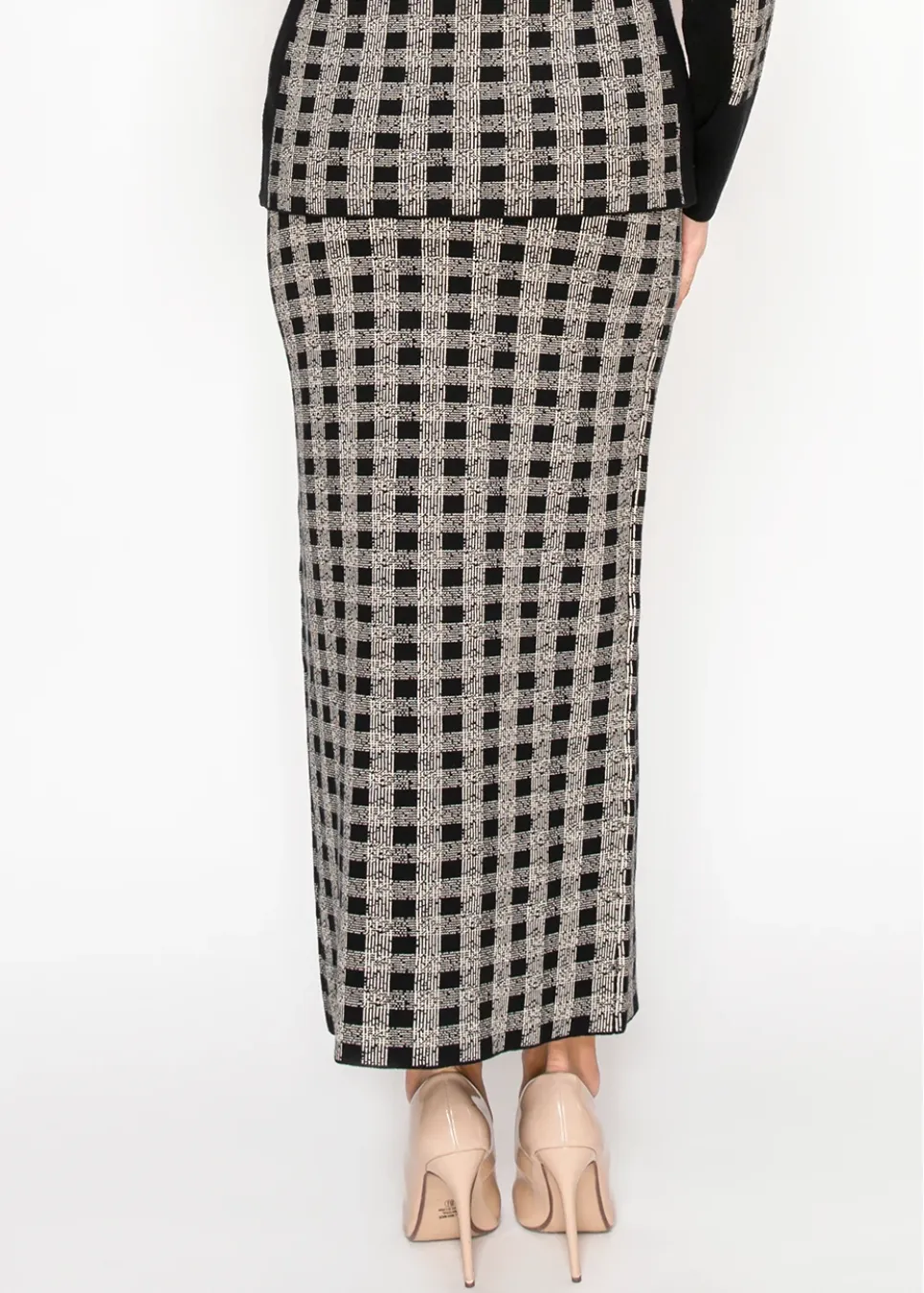 Checked Knit Maxi Skirt in Black